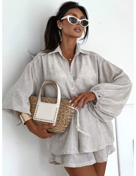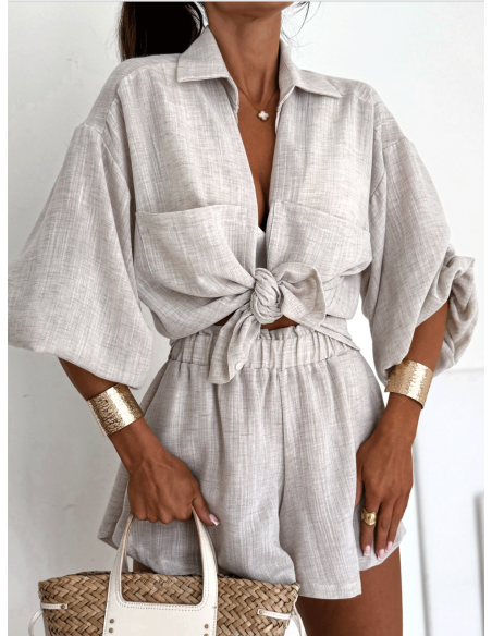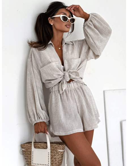Bawełniany komplet z krótkimi spodenkami CALVINA - mocca