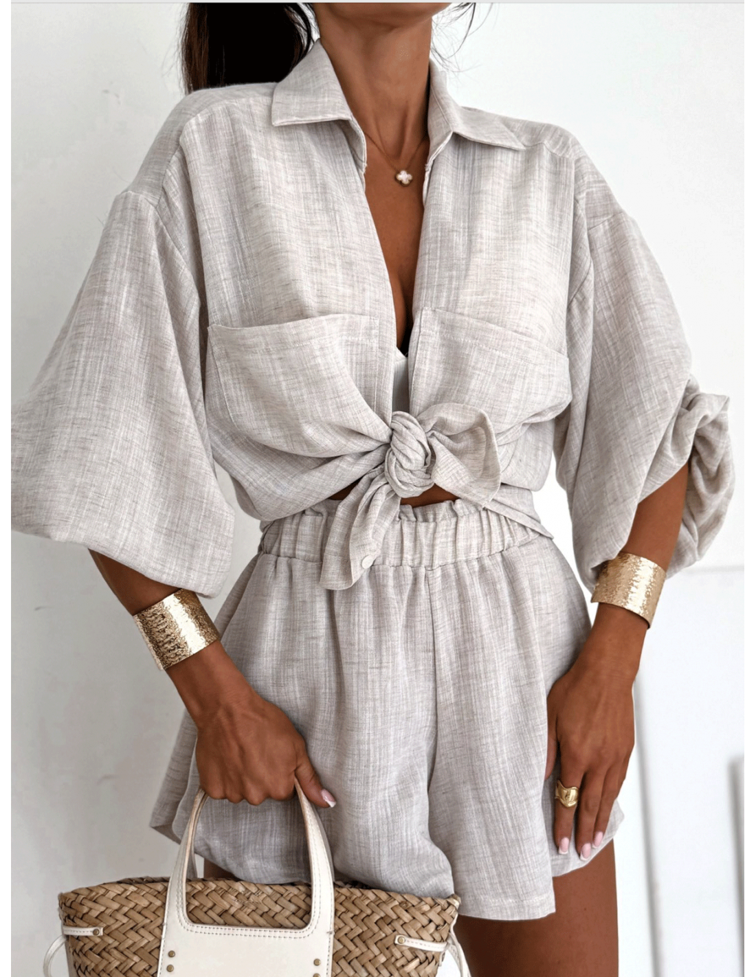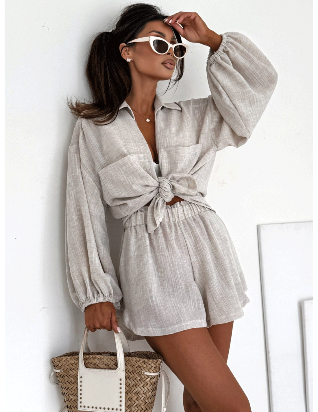 Zestaw noś z topem i sandałkami lub klapkami na luzie, albo zarzuć koszulę na bikini, tworząc stylowy wakacyjny look.