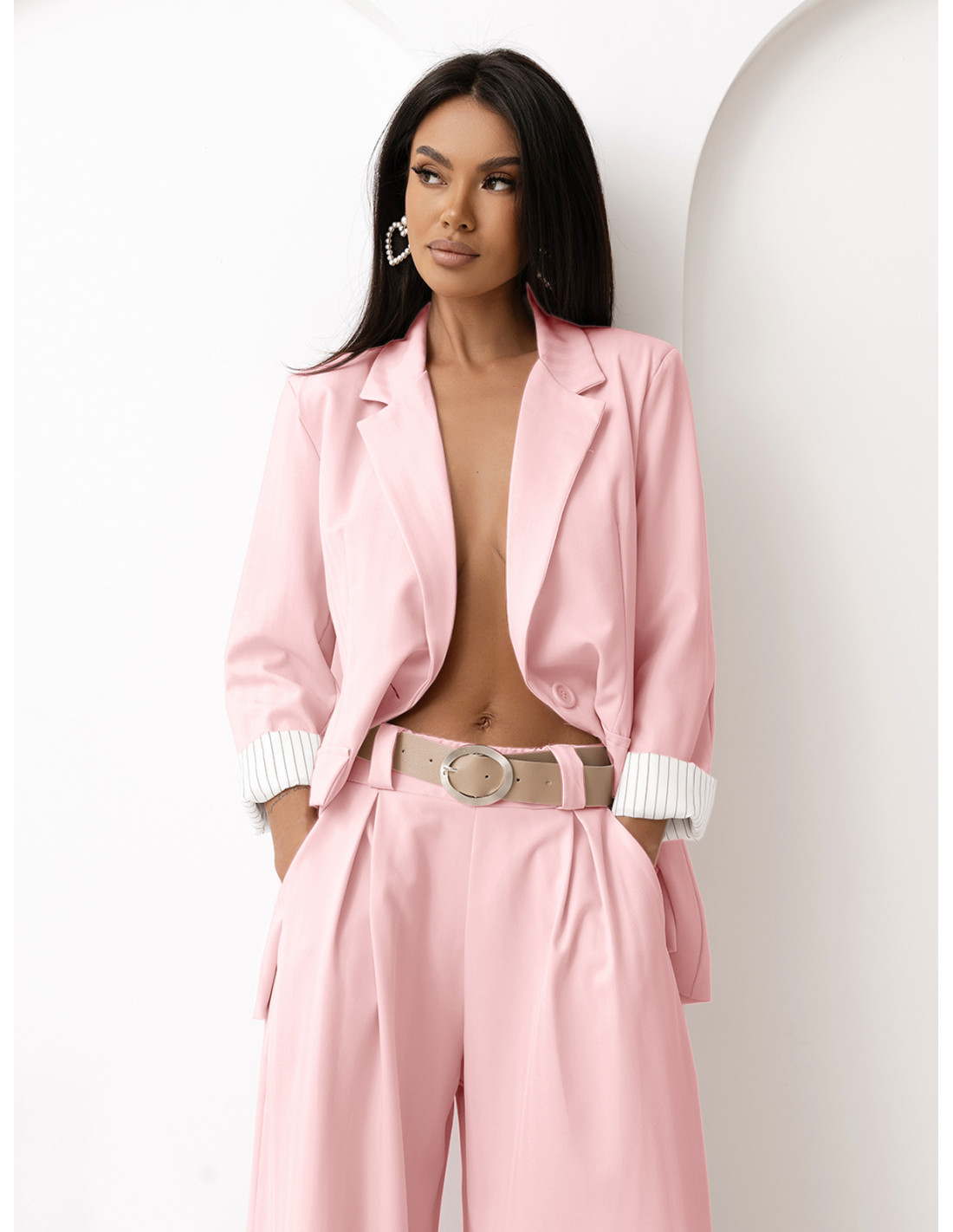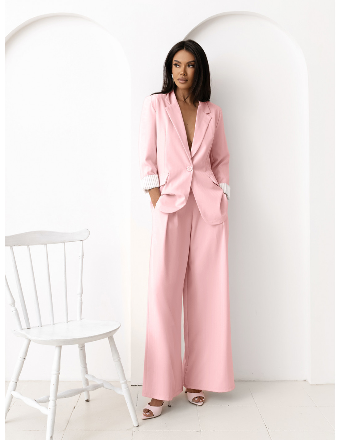Garnitur marynarka i szerokie spodnie VIVIO - pudrowy róż
