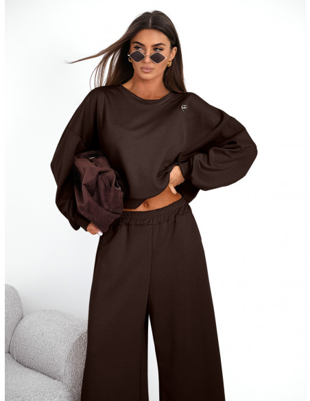 WP Komplet z wiskozy z szerokimi spodniami - czekoladowy