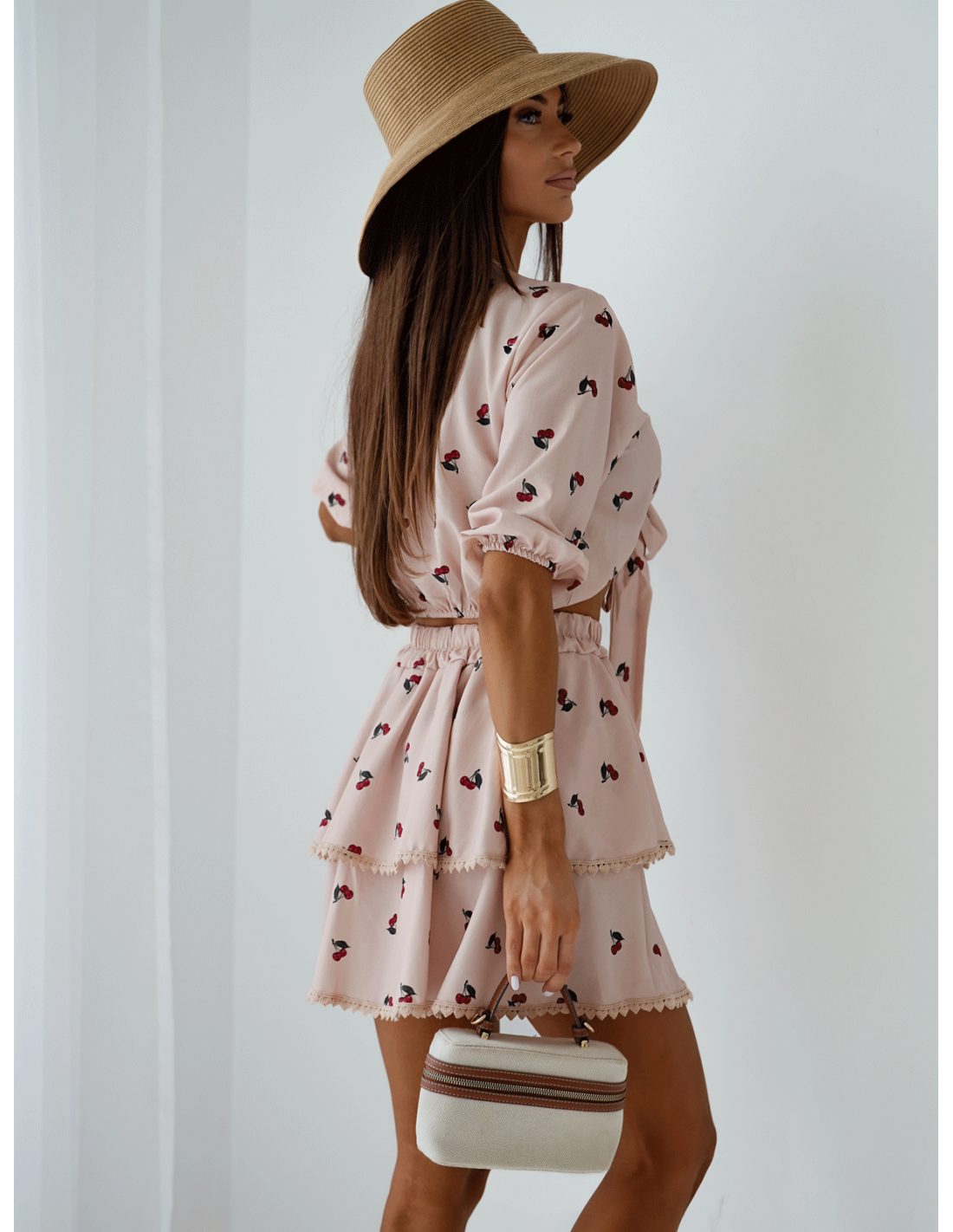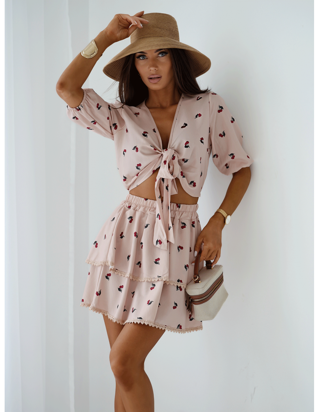 WP Komplet crop top i spódniczka w print - beżowy