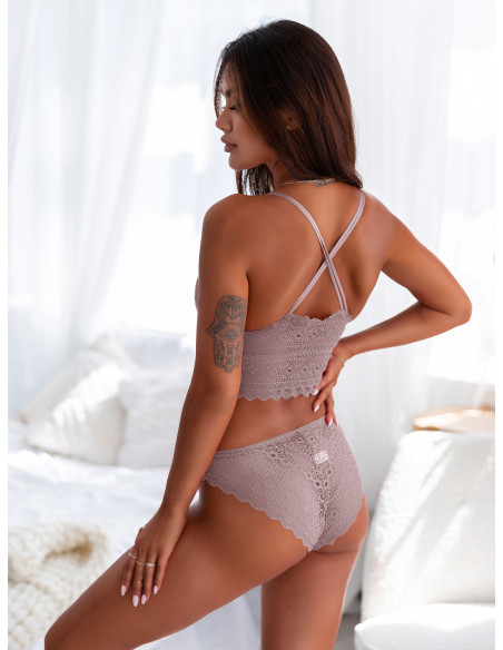 Komplet bielizny z koronki top i majtki - LEXSI - brudny róż