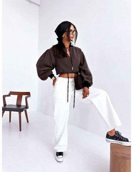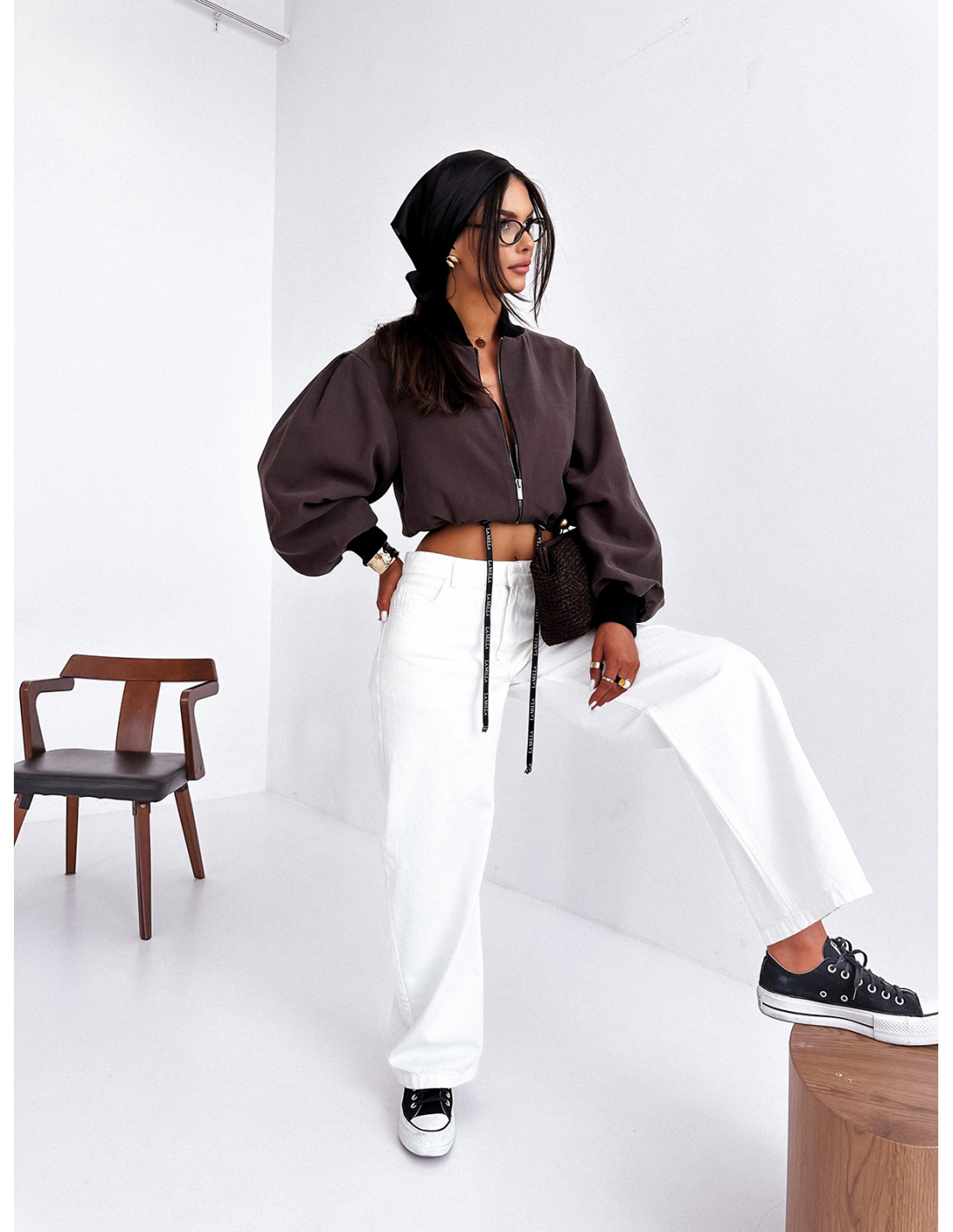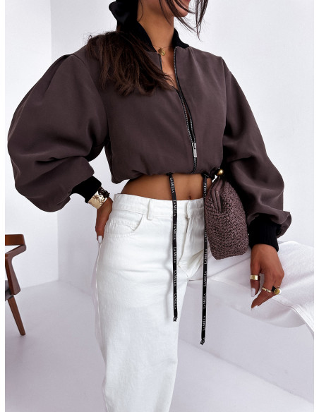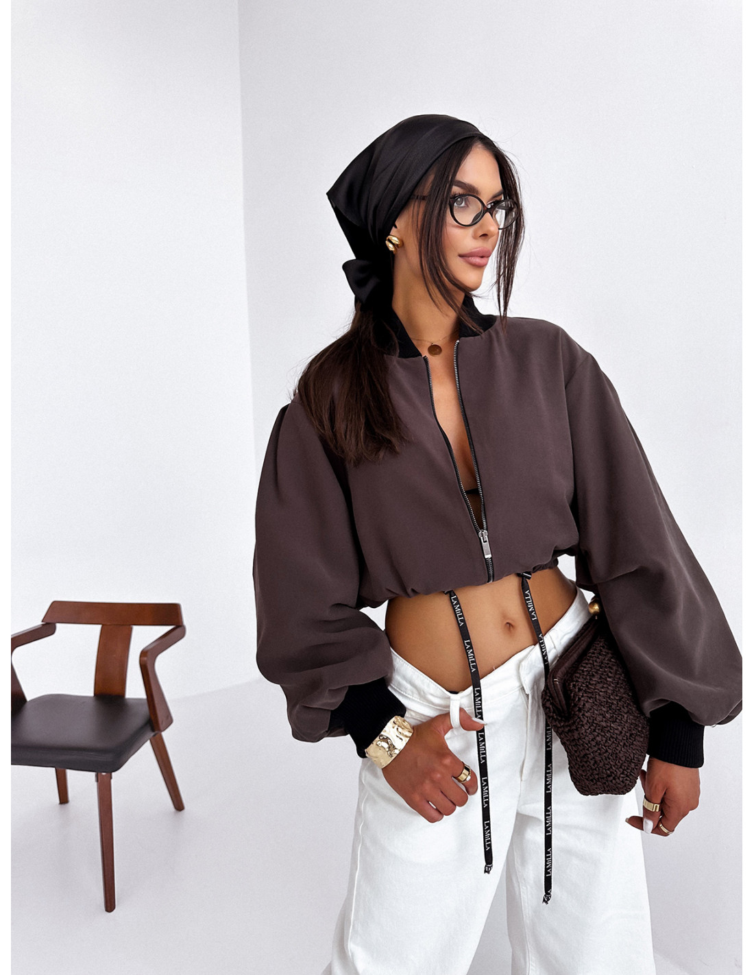 Krótka kurtka bomberka ze ściągaczem MANON - czekoladowa