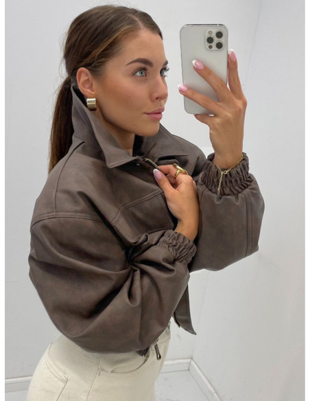 Krótka kurtka bomberka z ekoskóry EIRLLYS - cappuccino