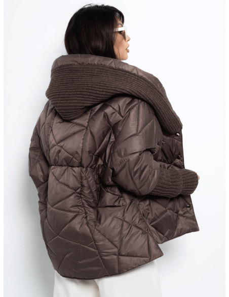 Pikowana kurtka z dzianinowym rękawem MOEKO - czekoladowa