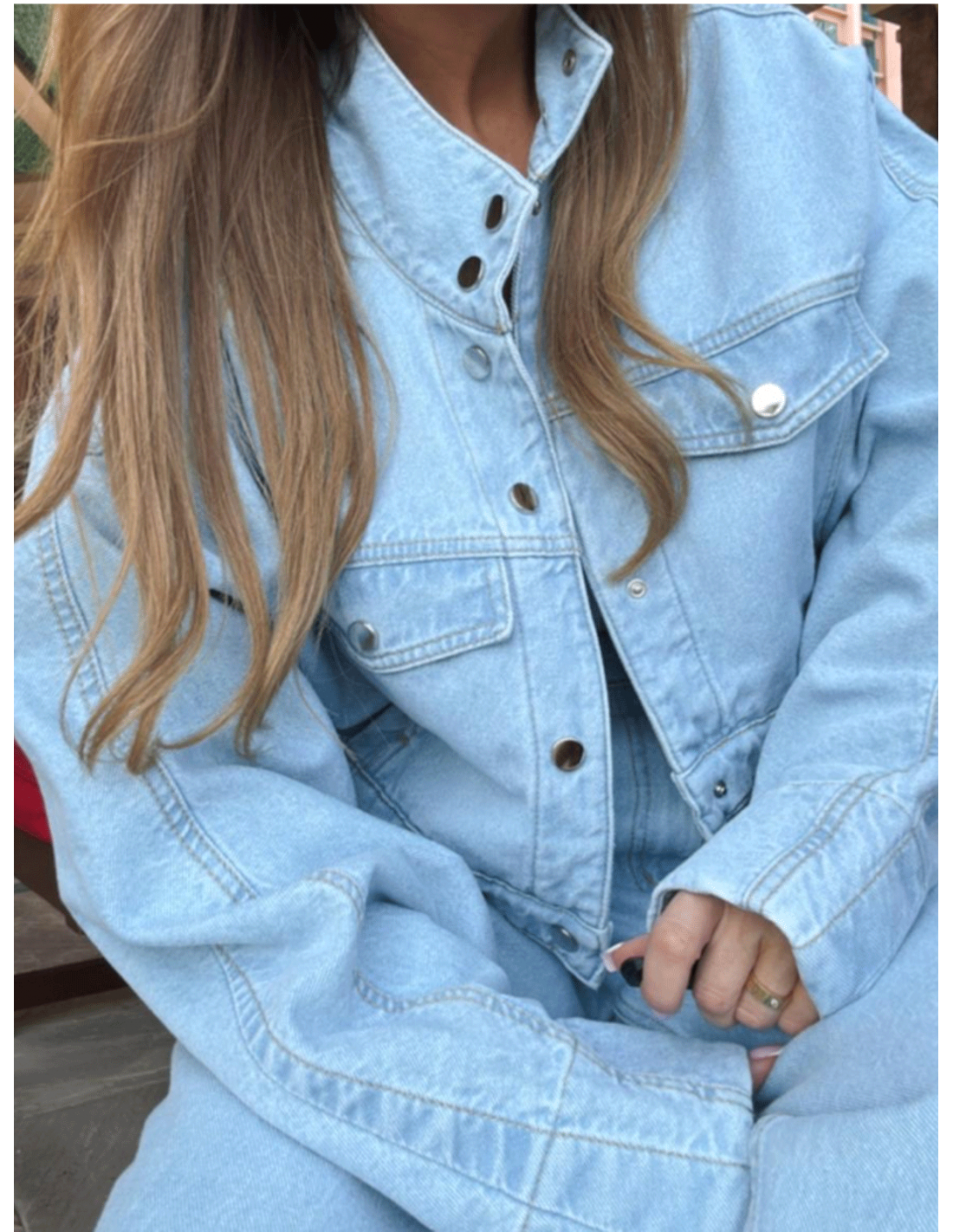 Krótka kurtka katana jeansowa CISSY - jasny jeans
