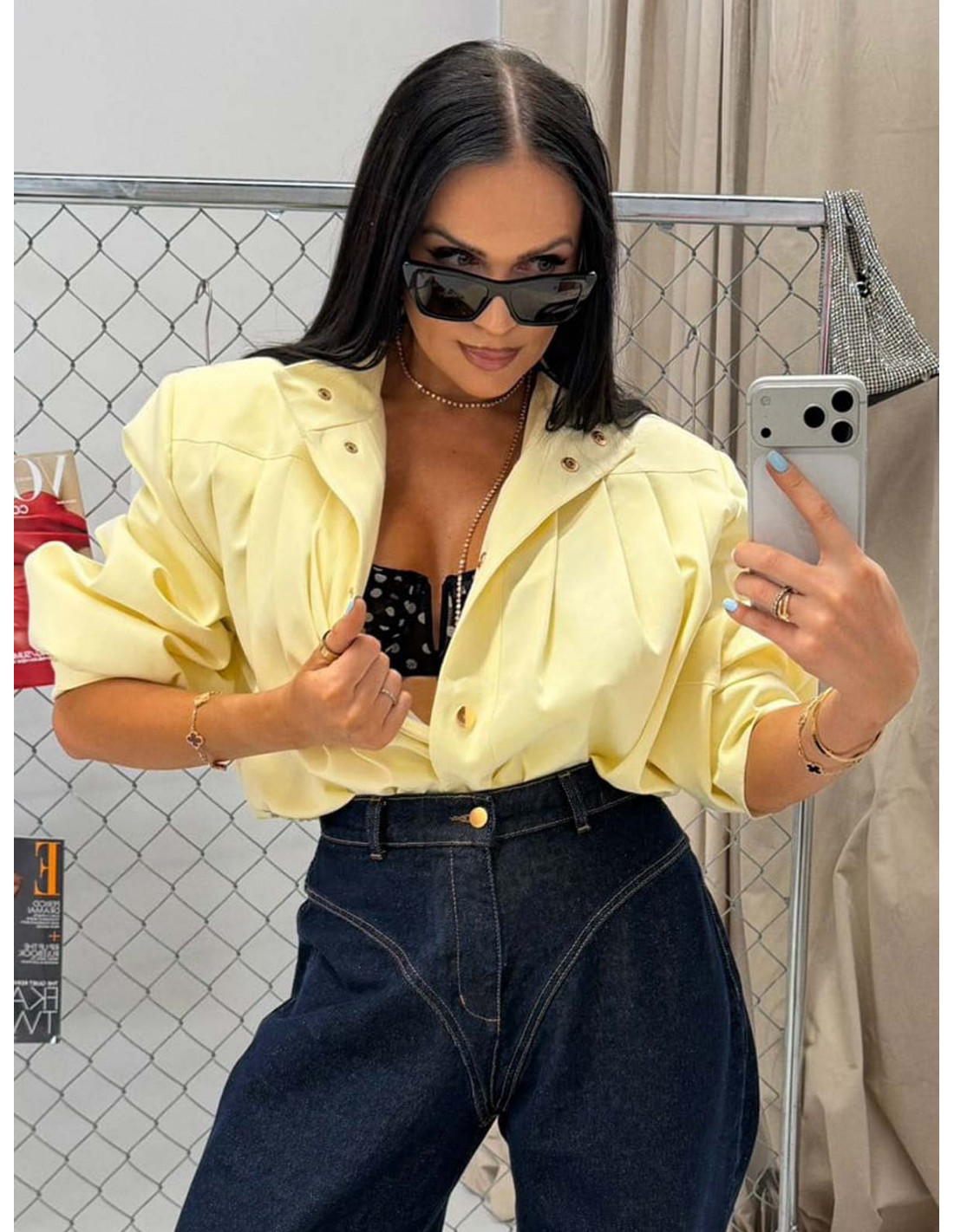Krótka kurtka bomberka z wiskozy LIZZY - bananowa