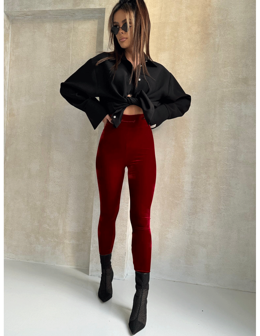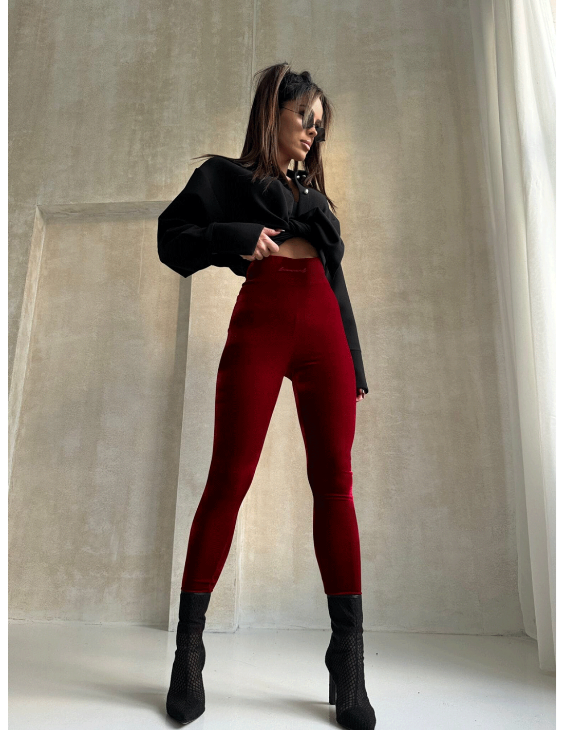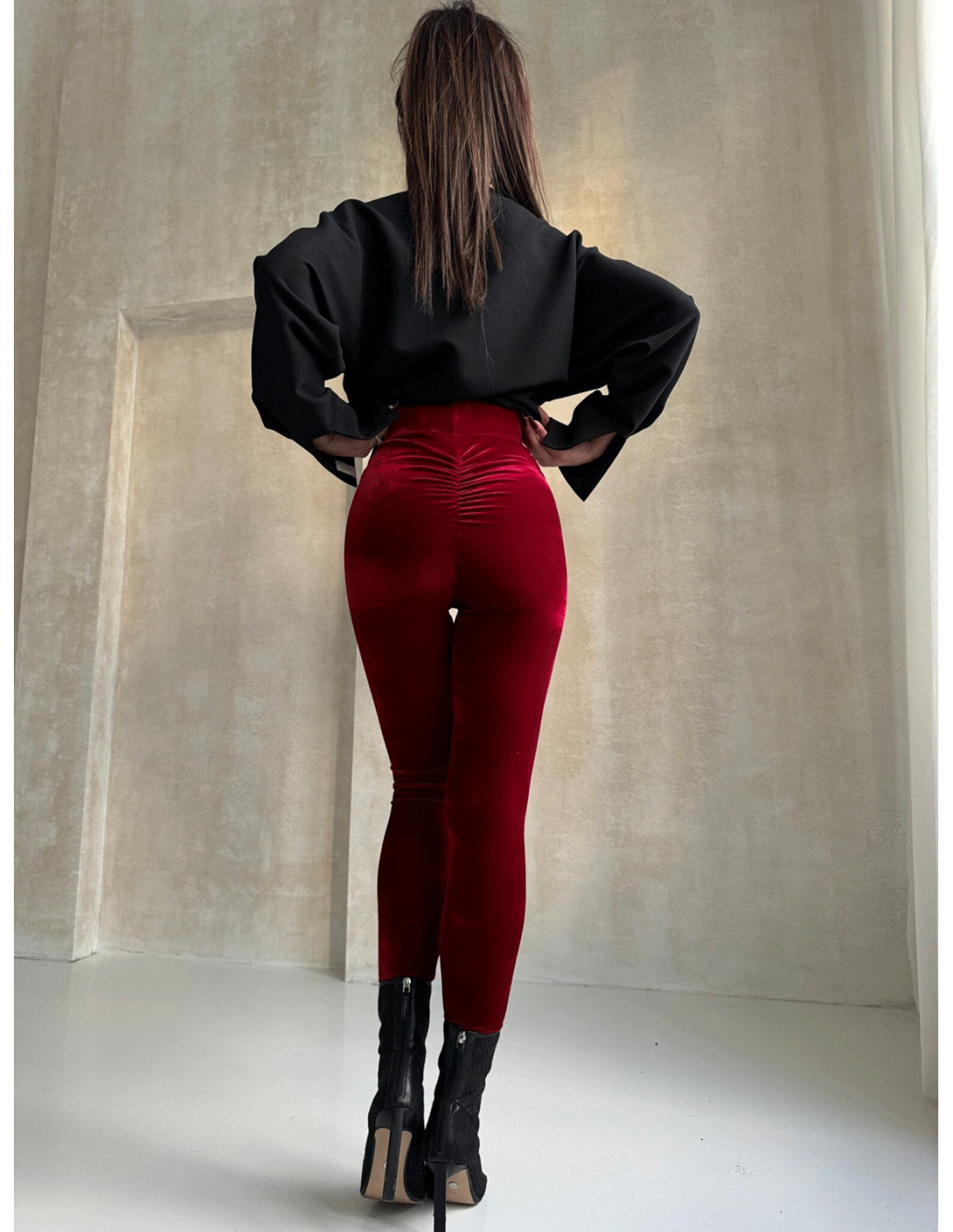 Welurowe legginsy z marszczeniem INESA - bordowe