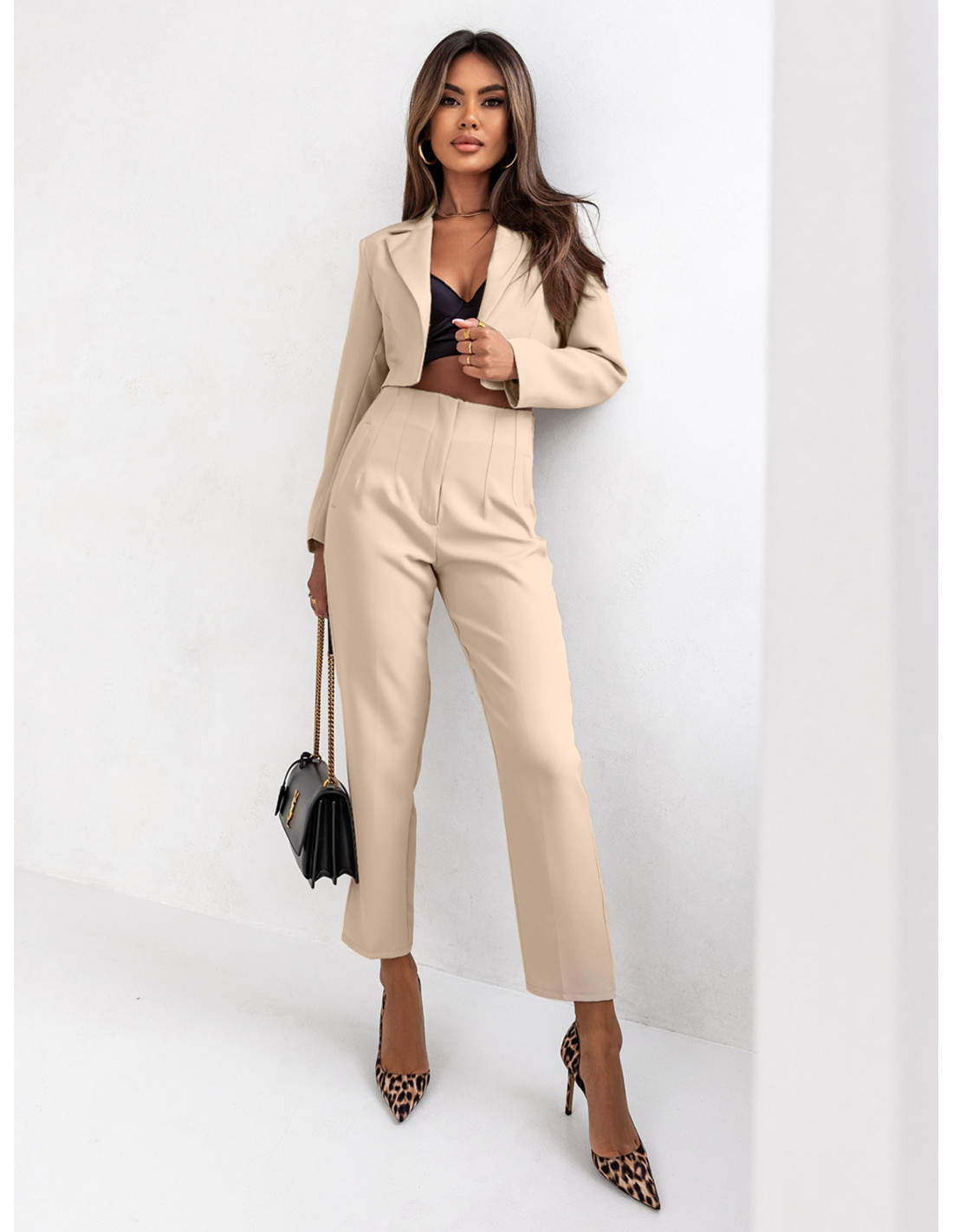 Krótka marynarka z guzikiem AITANA -jasny beż