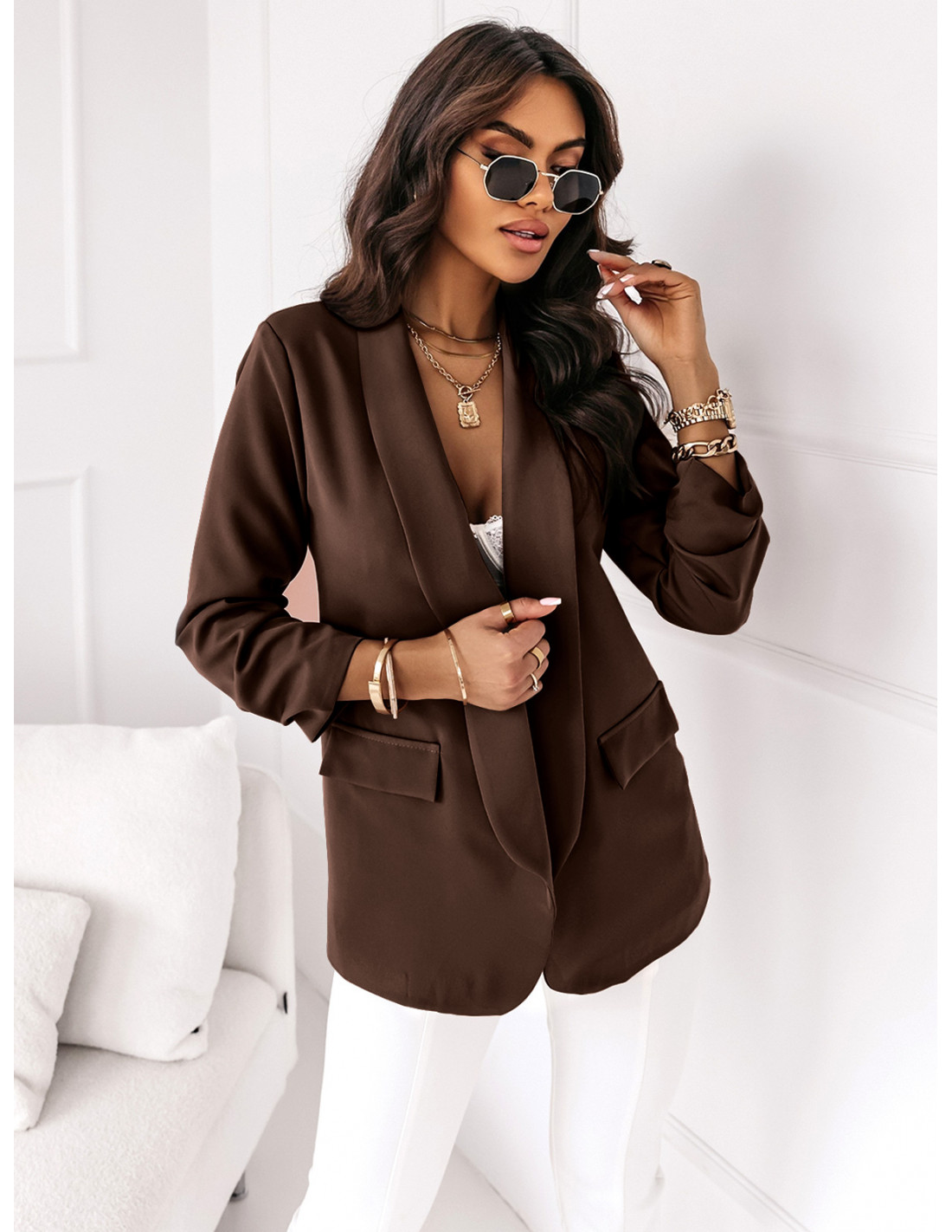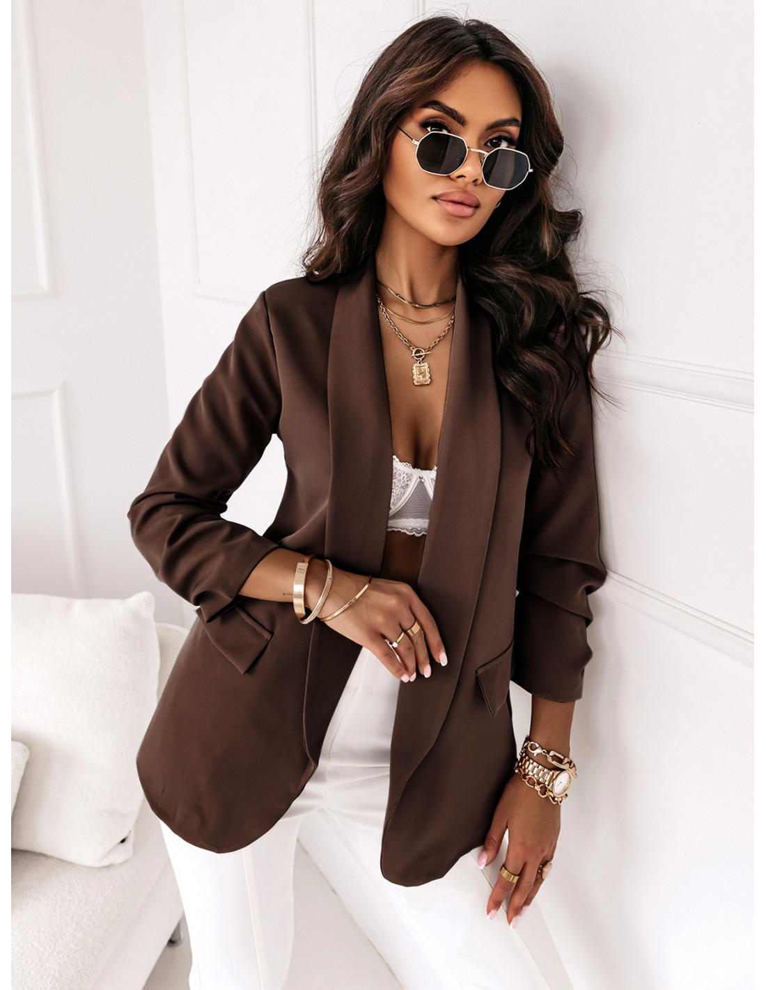 Klasyczna jednokolorowa marynarka IMAN - czekoladowa