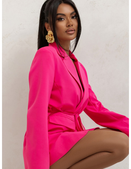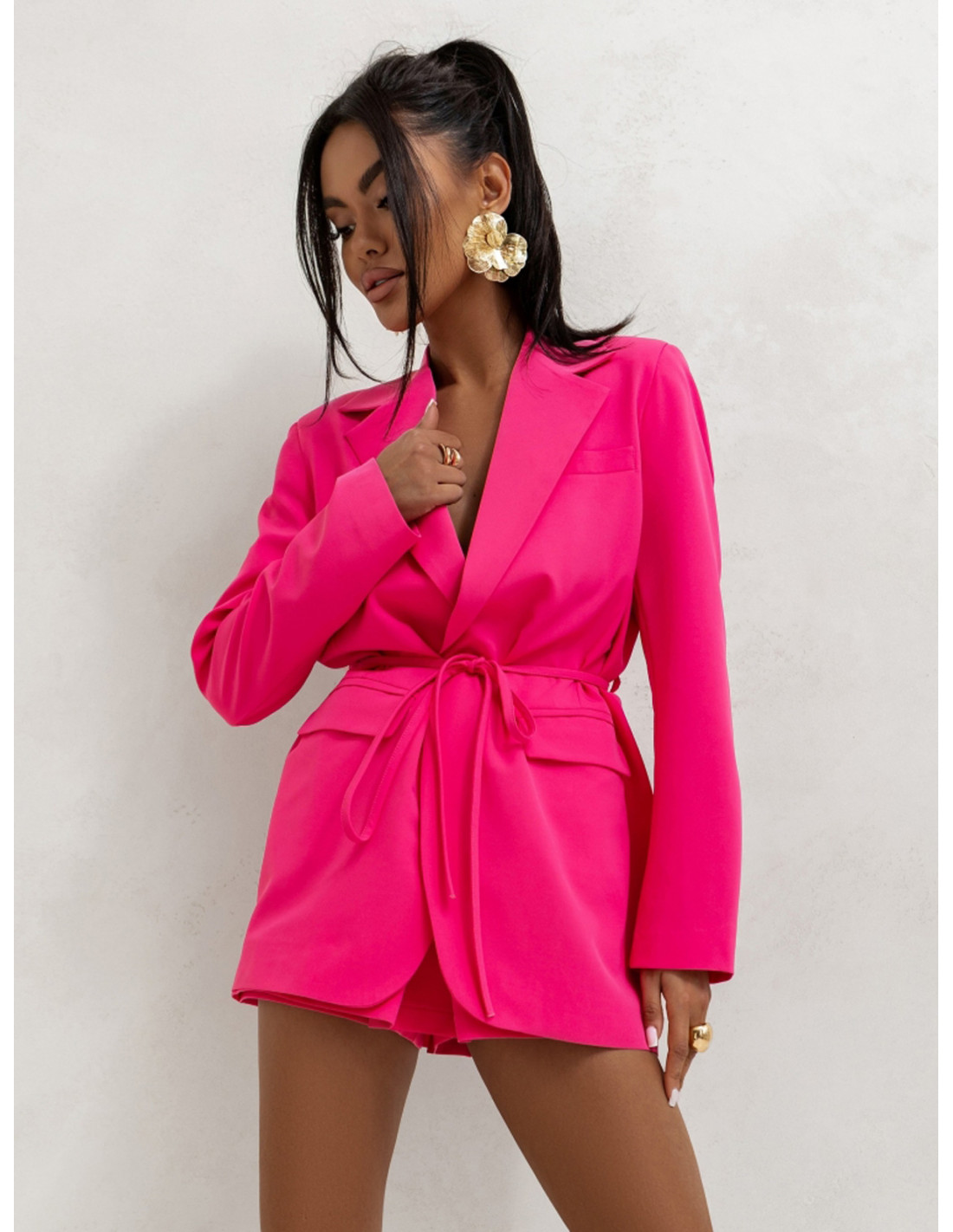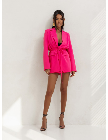 Elegancka długa marynarka z wiązaniem ARNI - różowa