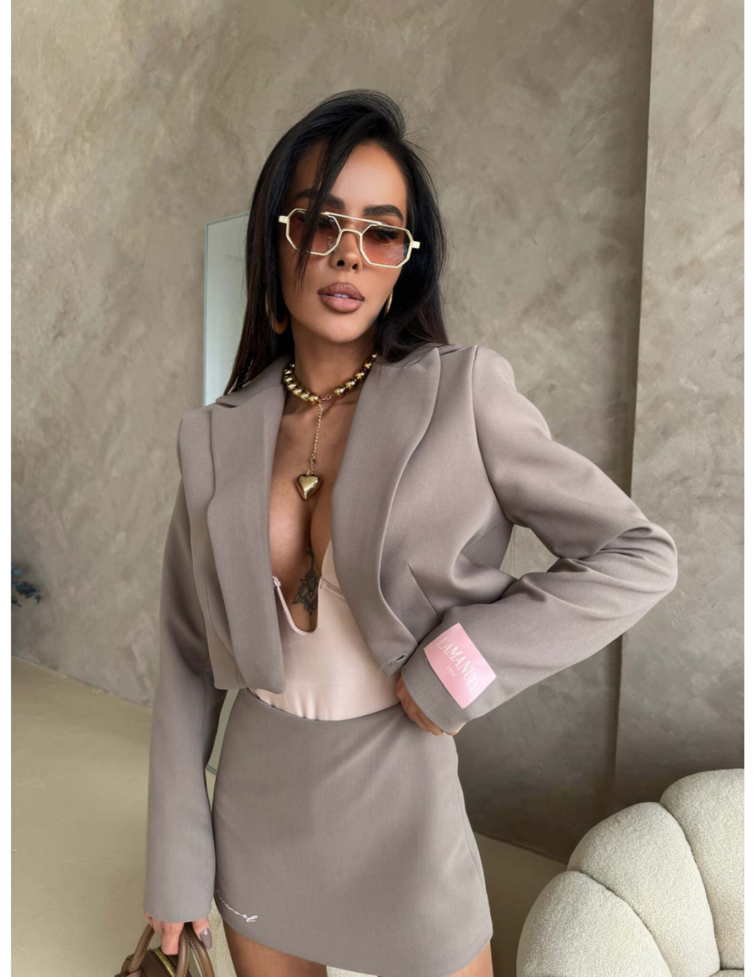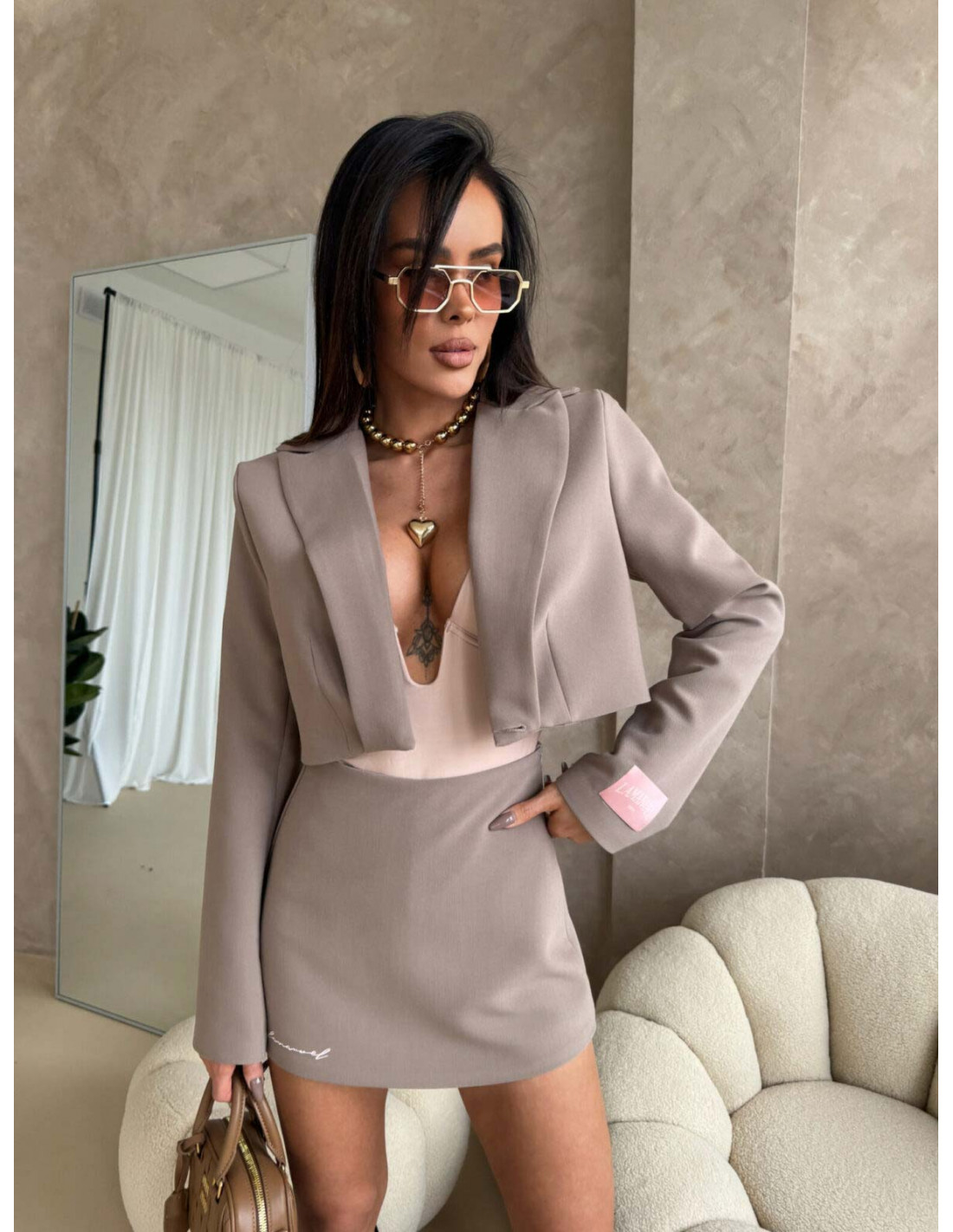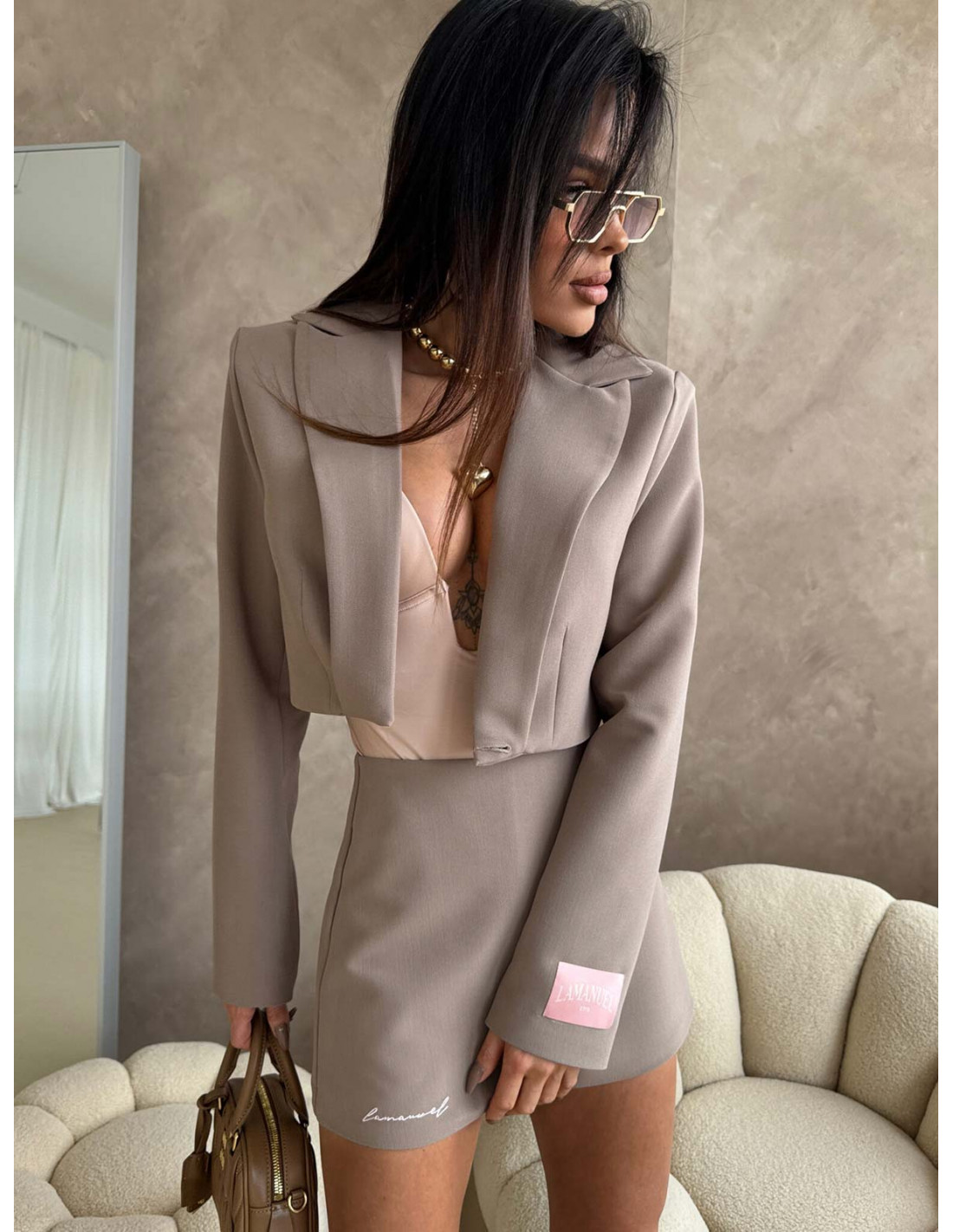 Elegancka krótka marynarka ARVELLA - mocha mousse