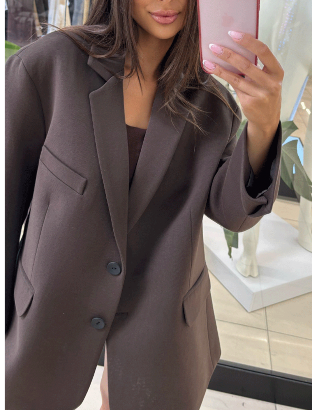 Marynarka oversize w kolorze czekoladowym to propozycja, która łączy nonszalancję z elegancją w najmodniejszym wydaniu.