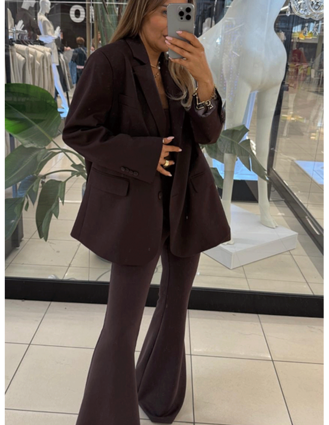 Oversizowa marynarka z guzikami GRETA - czekoladowa