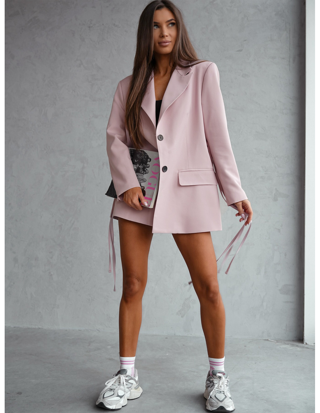 WP Marynarka oversize z wiązaniem - pudrowy róż
