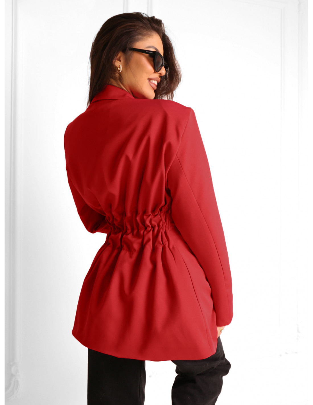 Marynarka posiada wszyte poduszki na ramionach, które nadają jej wyrazistą, modną linię i elegancką strukturę.