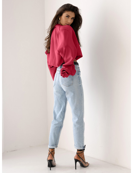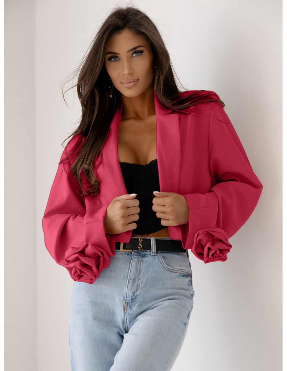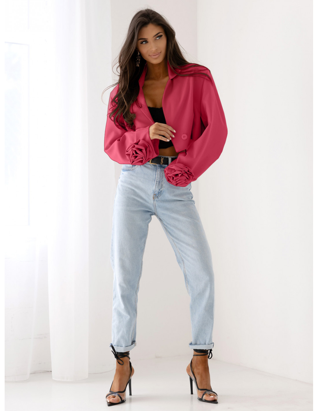 Krótka marynarka oversize z różą na rękawie MALLA - fuksjowa