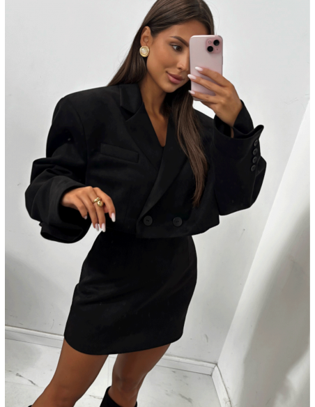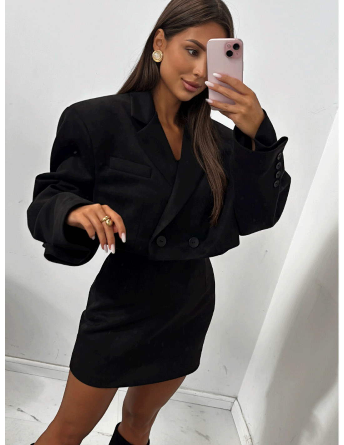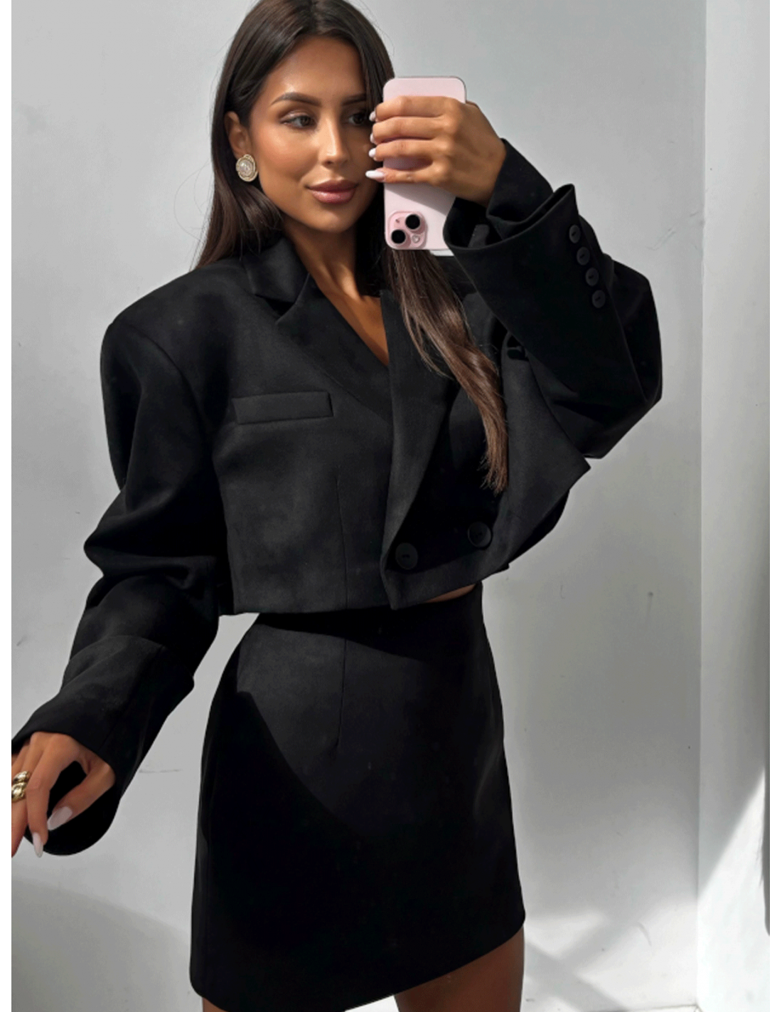 Krótka zamszowa marynarka oversize ARLINE - czarna