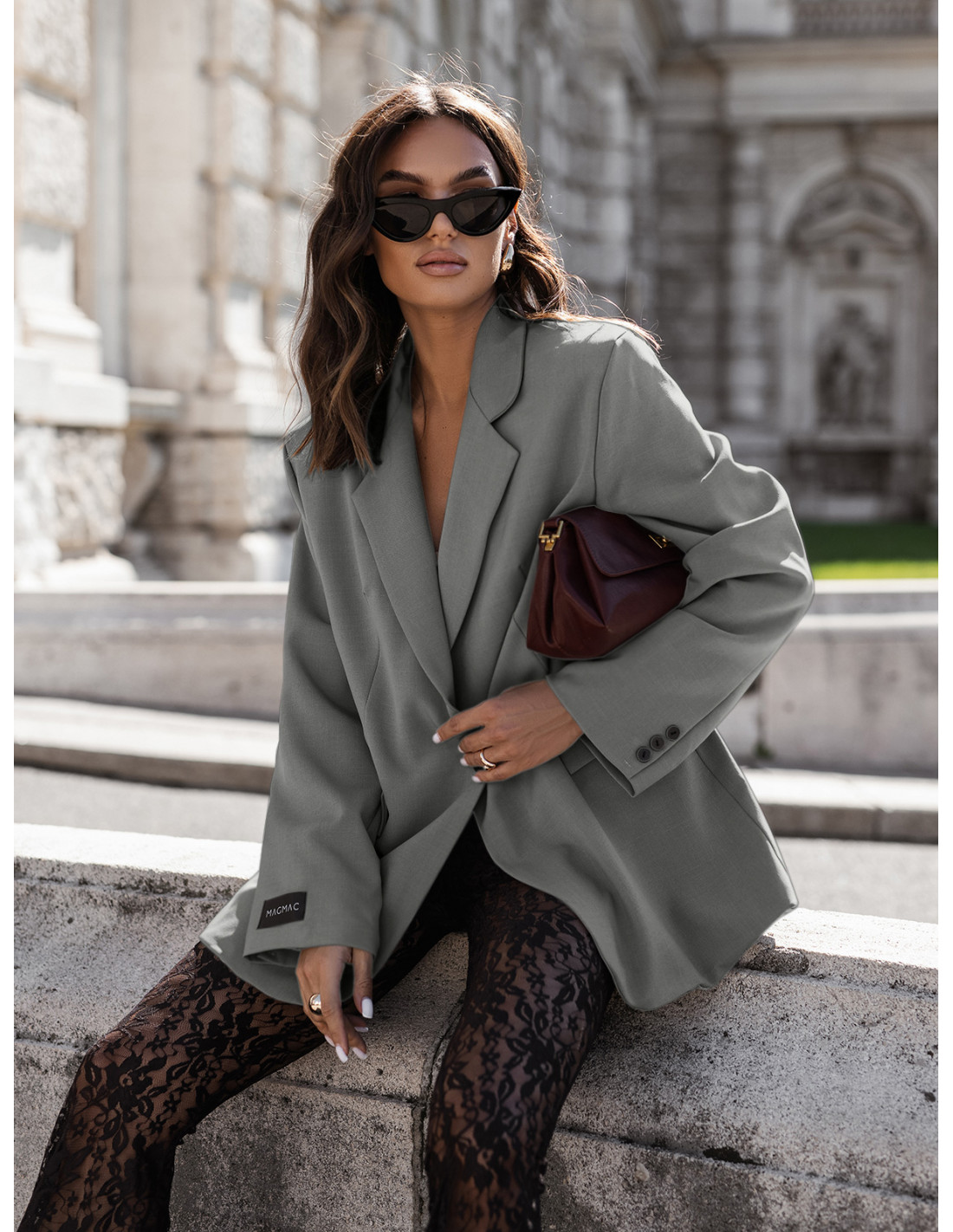 Ta marynarka oversize to kwintesencja stylu i klasy — zaprojektowana z myślą o kobietach, które lubią łączyć elegancję z miejskim luzem.