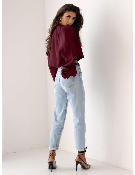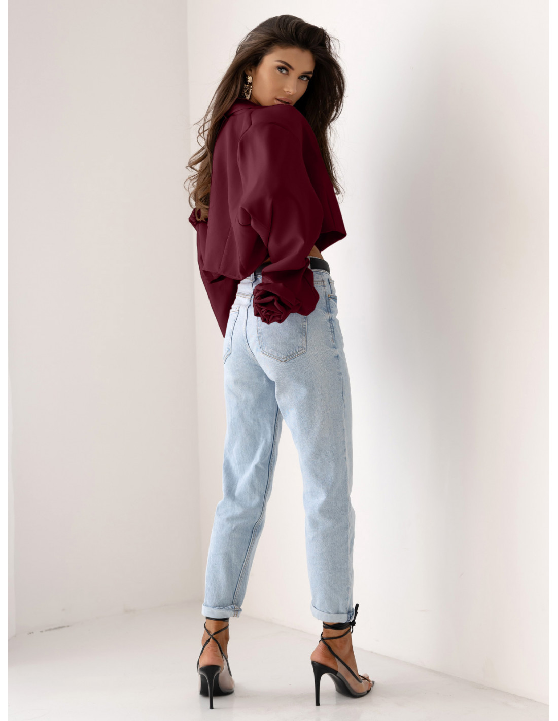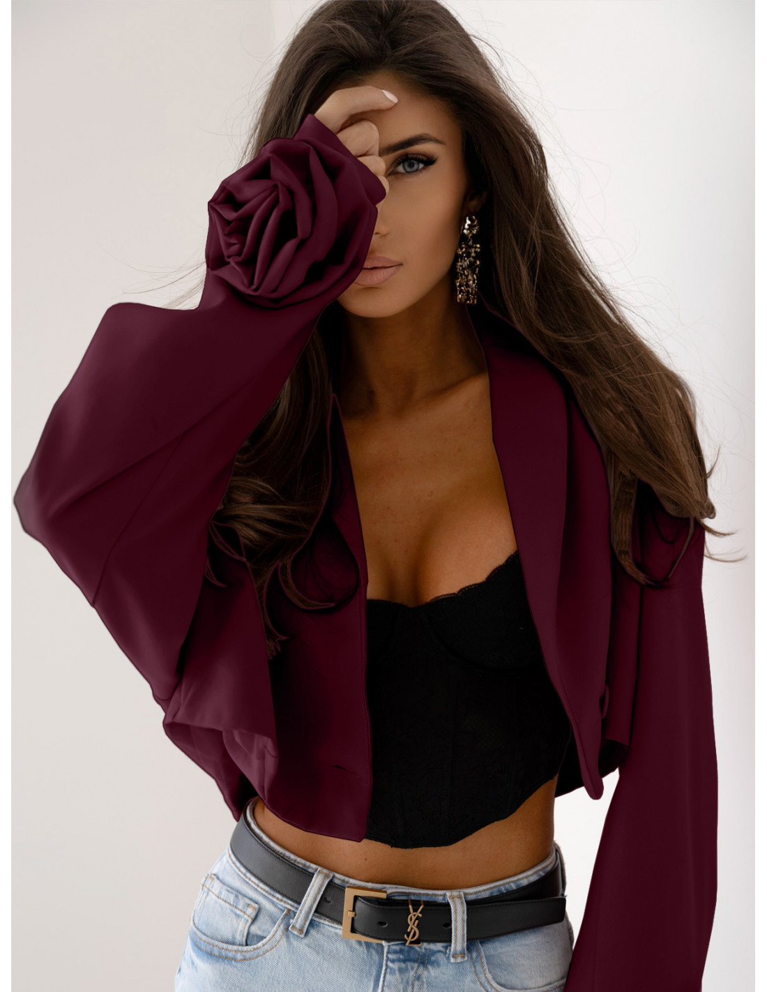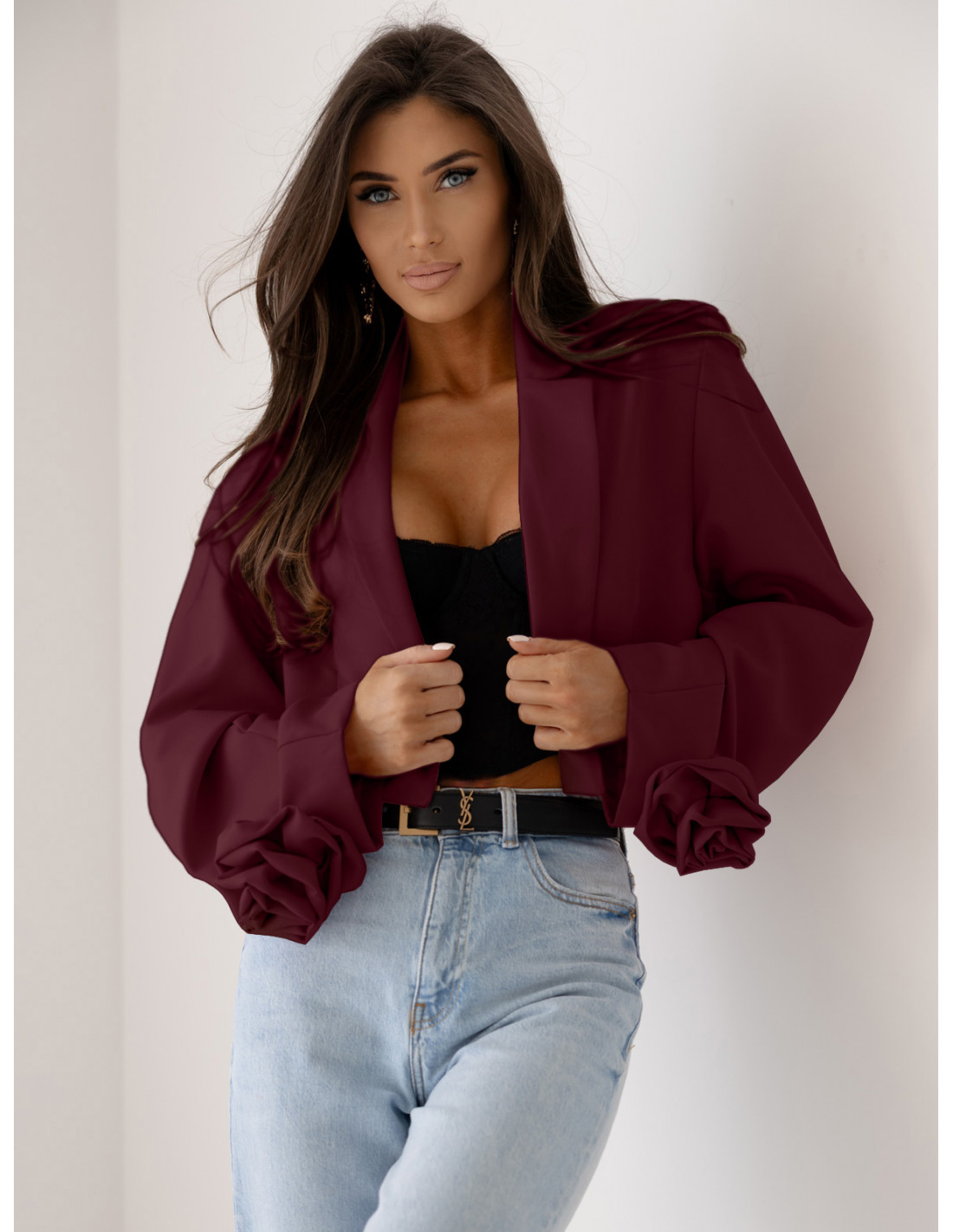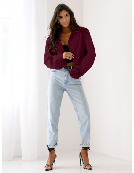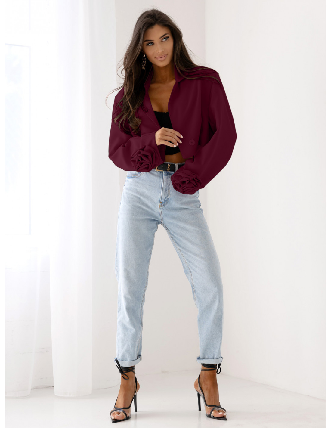 Krótka marynarka oversize z różą na rękawie MALLA - bordowa