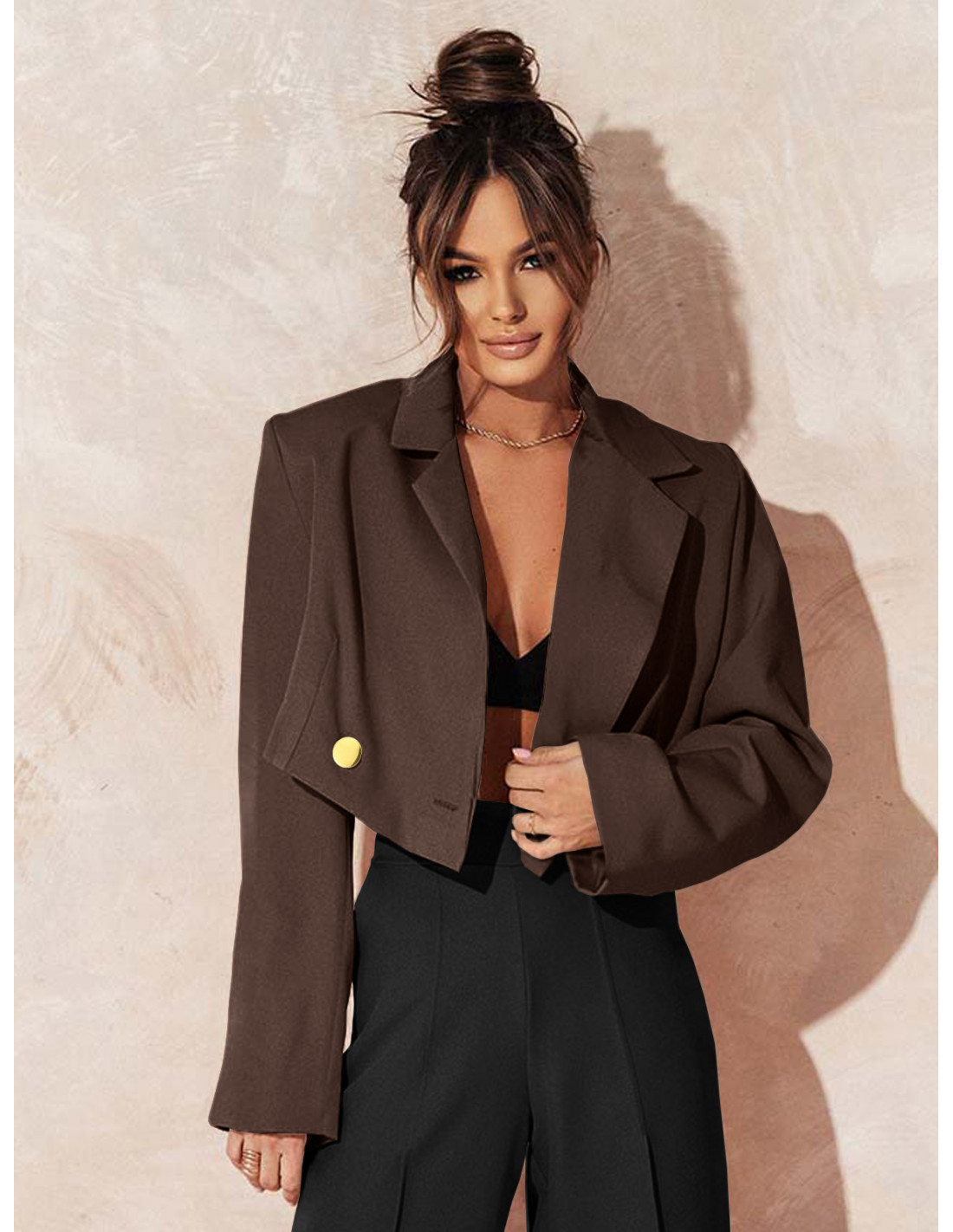 Wybierz elegancką krótką marynarkę w czekoladowym kolorze i podkreśl swoją wyjątkowość już teraz.