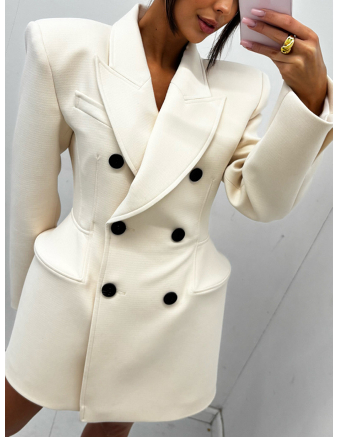 Elegancka marynarko-sukienka z guzikami AYAZ - śmietankowa