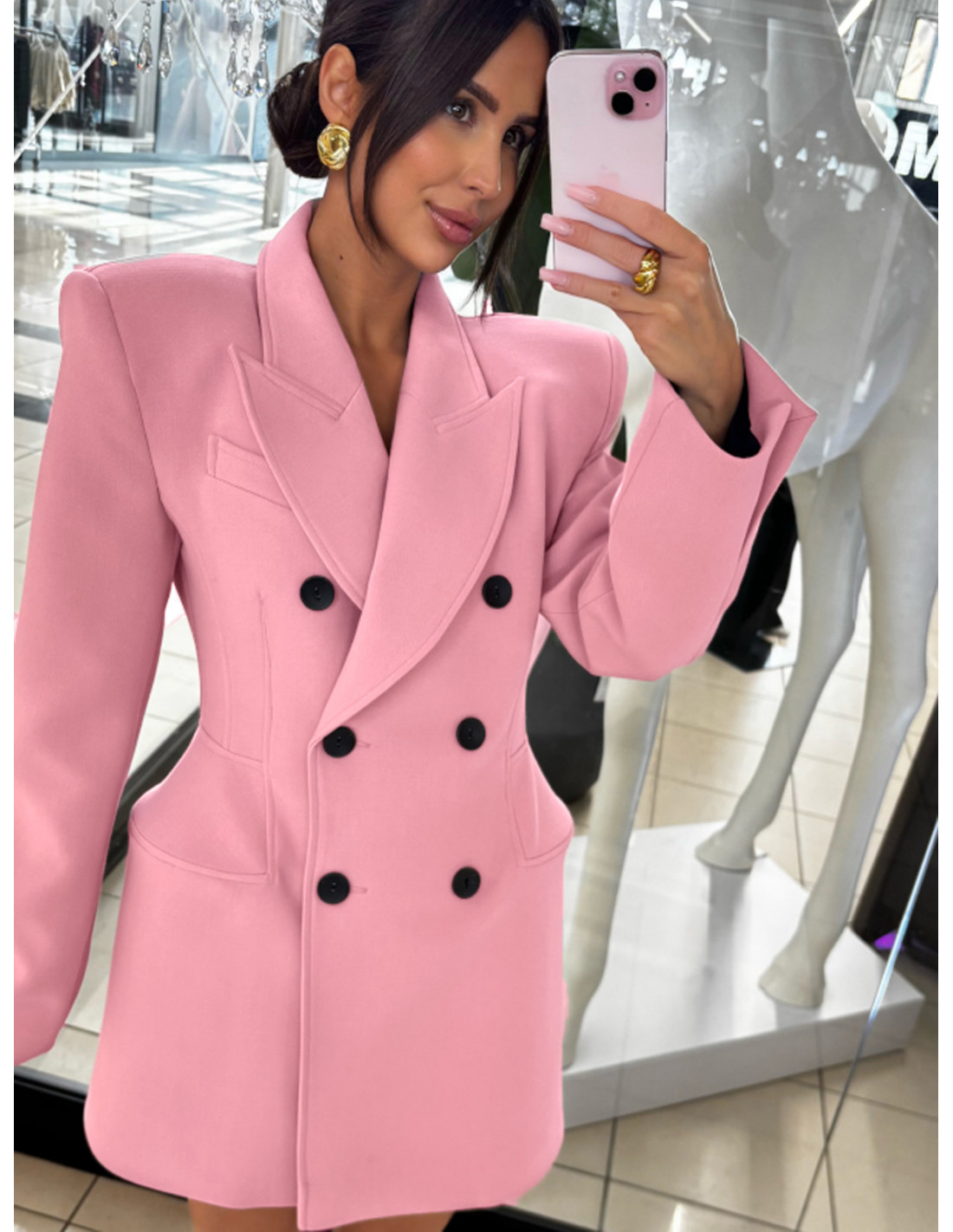 Elegancka marynarko-sukienka z guzikami AYAZ - pudrowy róż