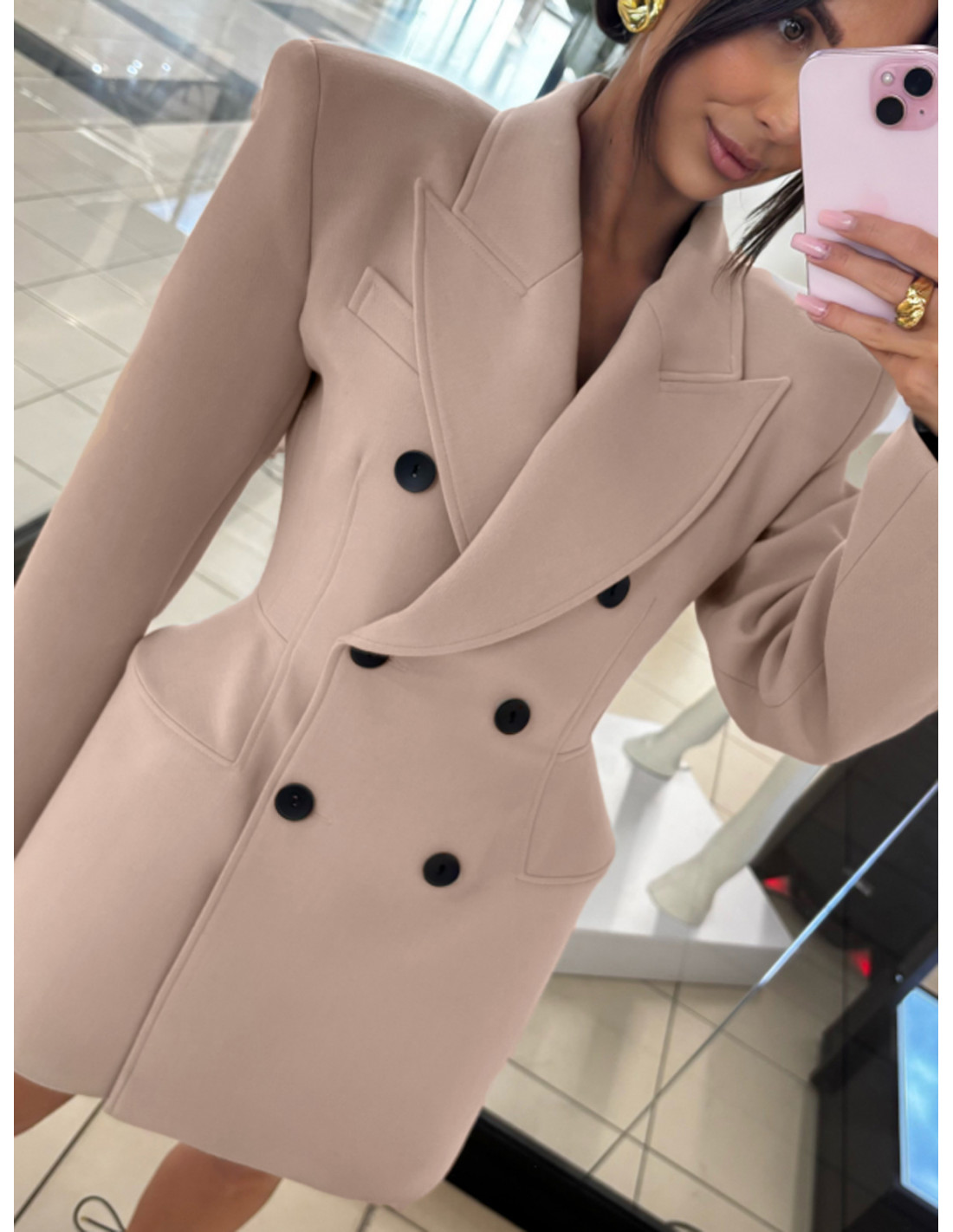 Elegancka marynarko-sukienka z guzikami AYAZ - cappuccino