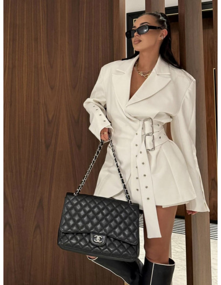 Elegancka marynarka oversize z paskami LUANA - biała