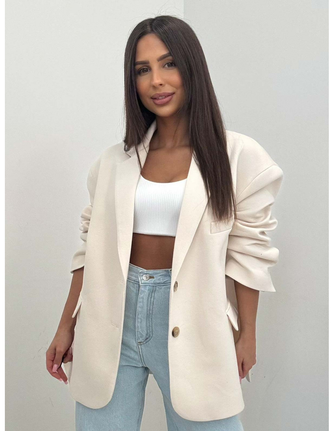 Śmietankowa marynarka to must have dla kobiet, które cenią wygodę, jakość i modowy minimalizm.