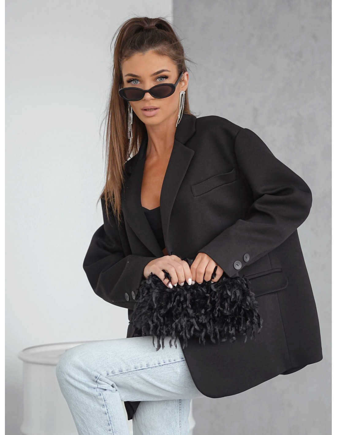 Bawełniana marynarka oversize LUMIA - czarna