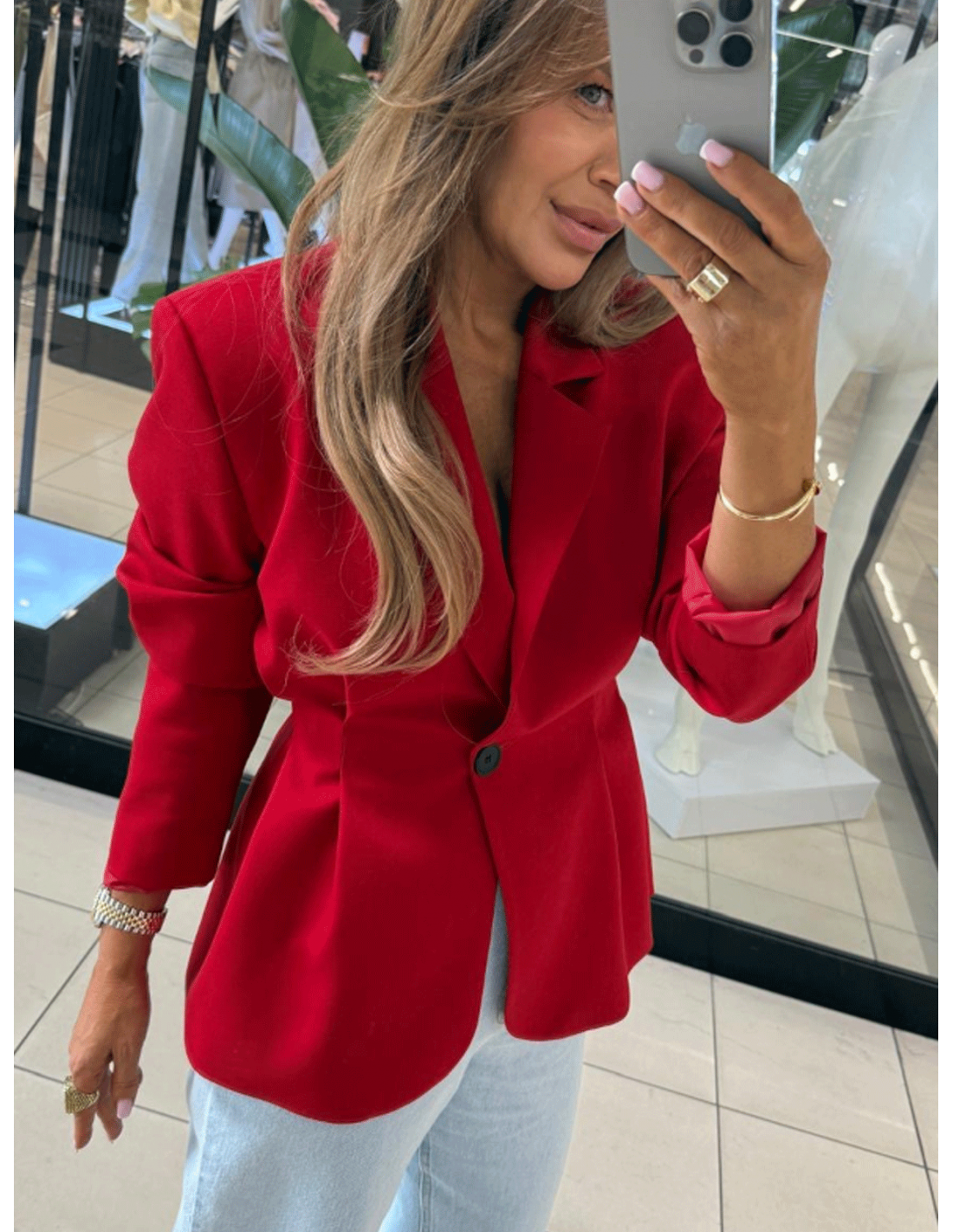 Taliowana marynarka z zakładkami w kolorze czerwonym nie przejdziesz nie zauważona.