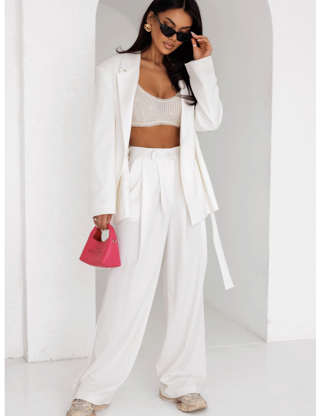 Zestaw z szerokimi spodniami w tym samym kolorze – dla efektu modnego garnituru.