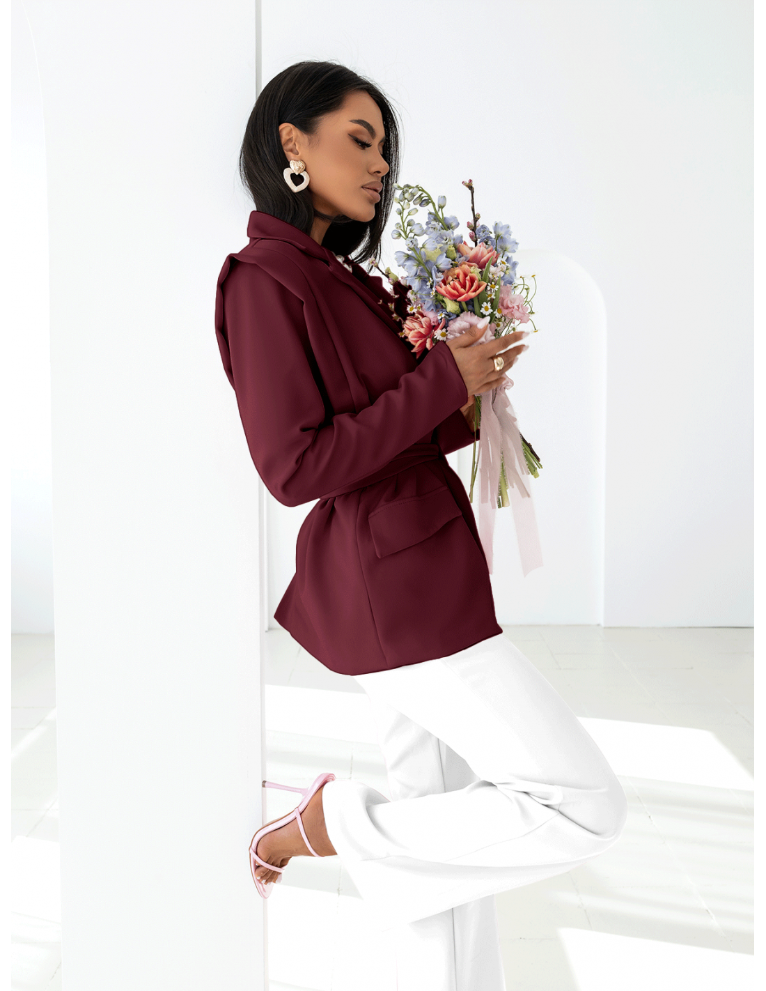 Elegancka długa marynarka z wiązaniem ARSJA - bordowa