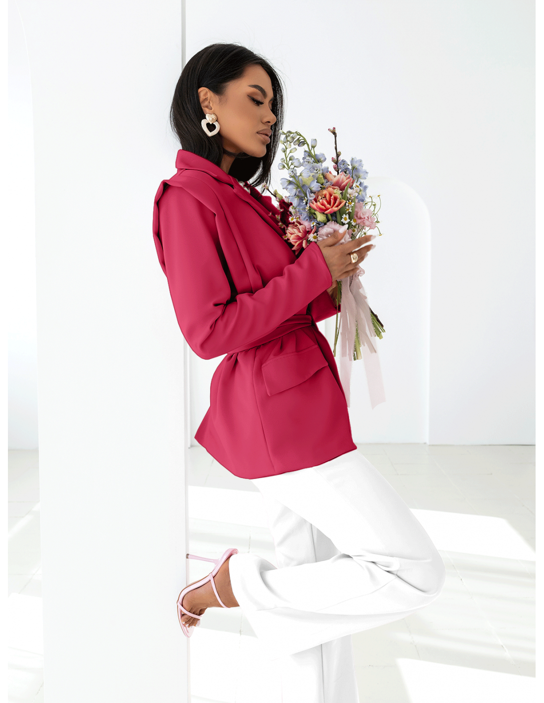 Elegancka długa marynarka z wiązaniem ARSJA - fuksjowa