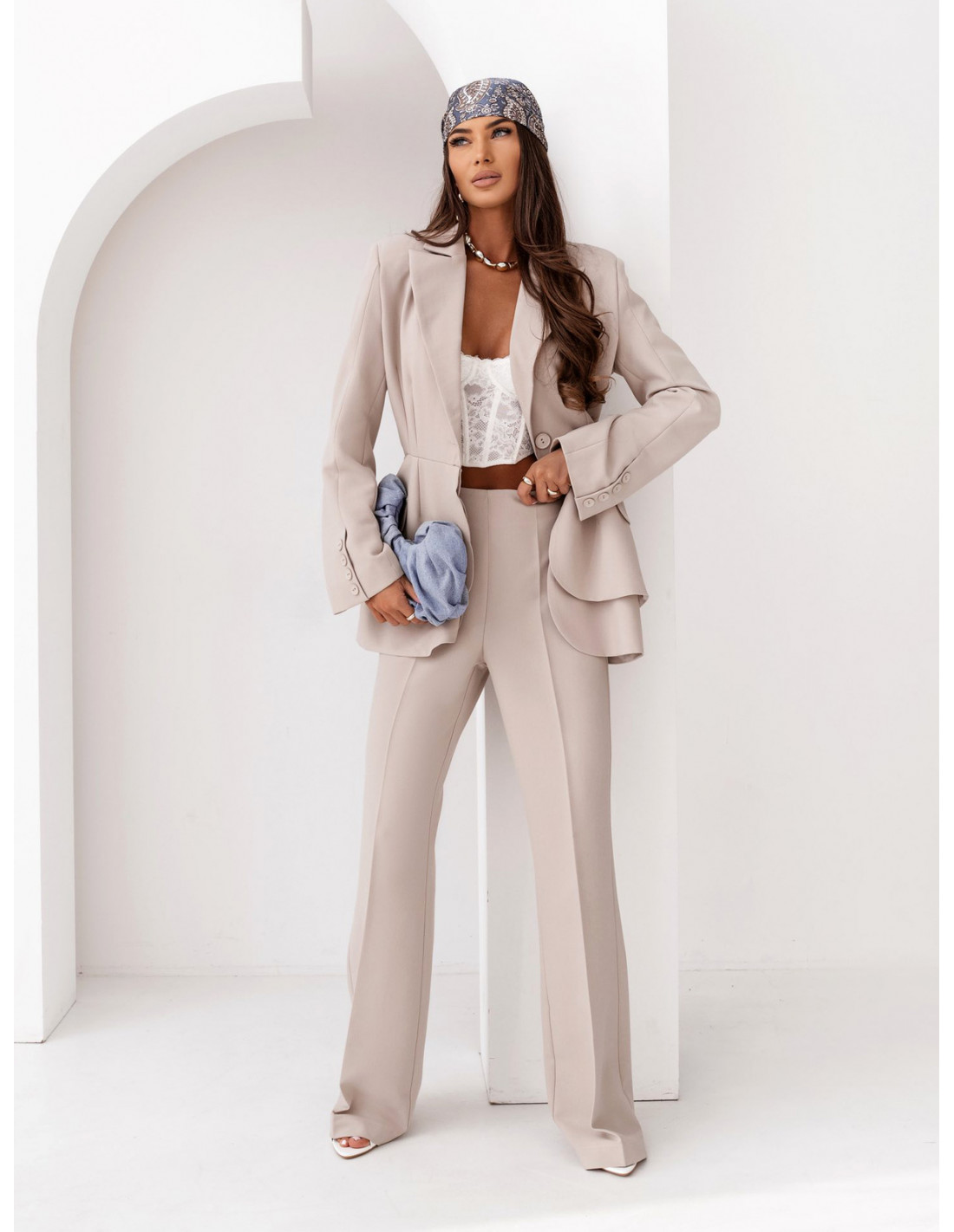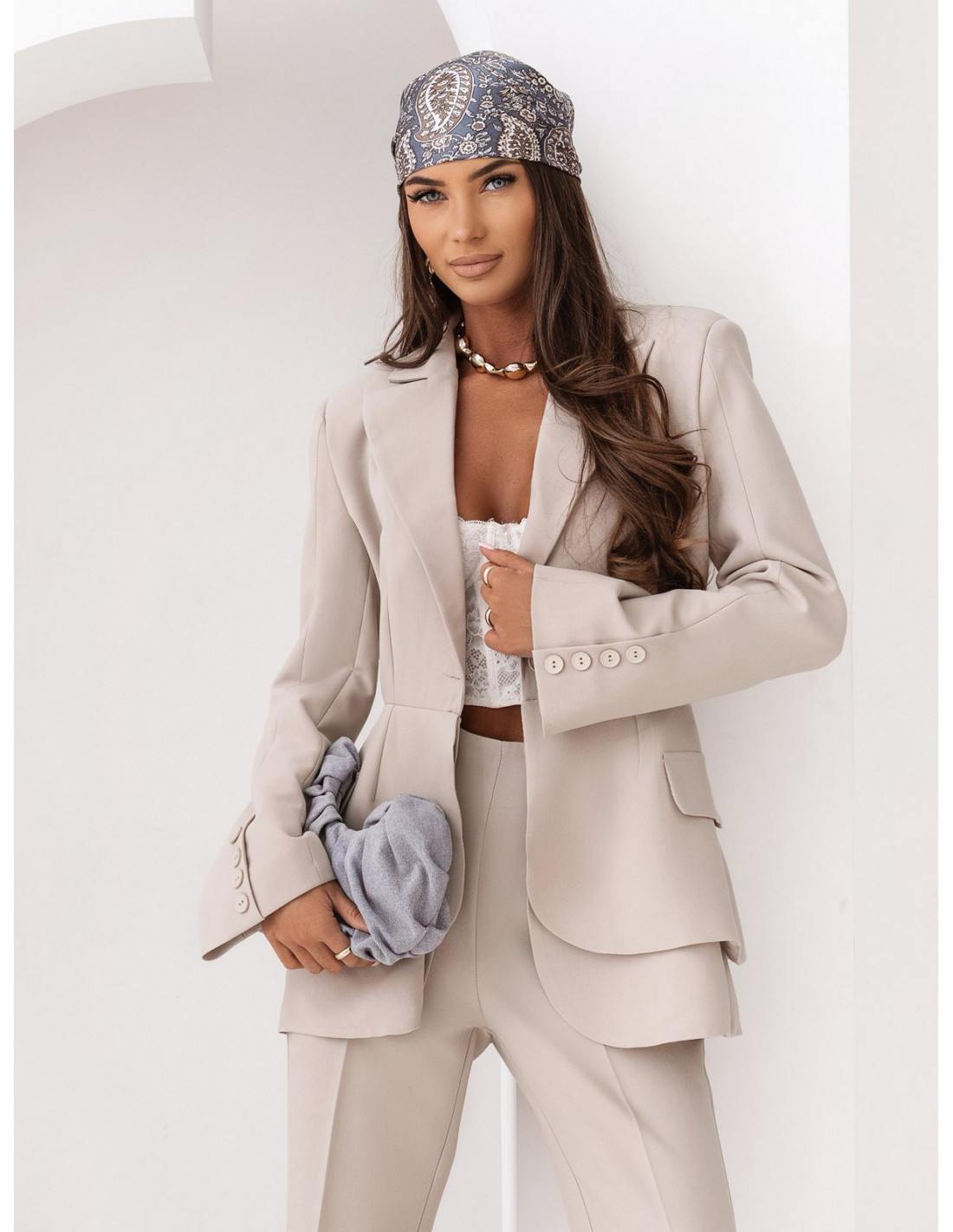 Długa taliowana marynarka ATALIA - beżowa
