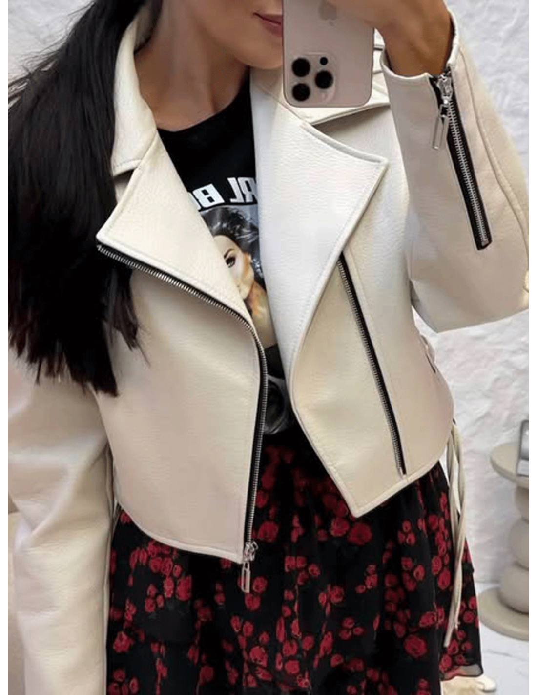 Krótka kurtka ramoneska z eko-skóry ASTRA - jasny beż