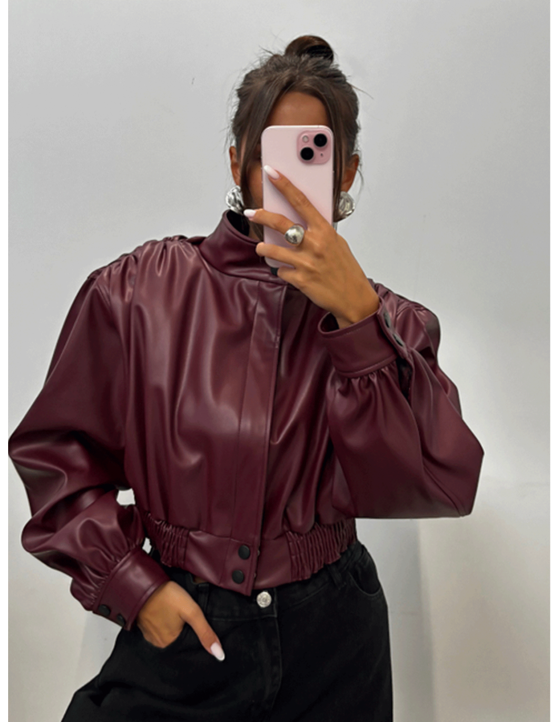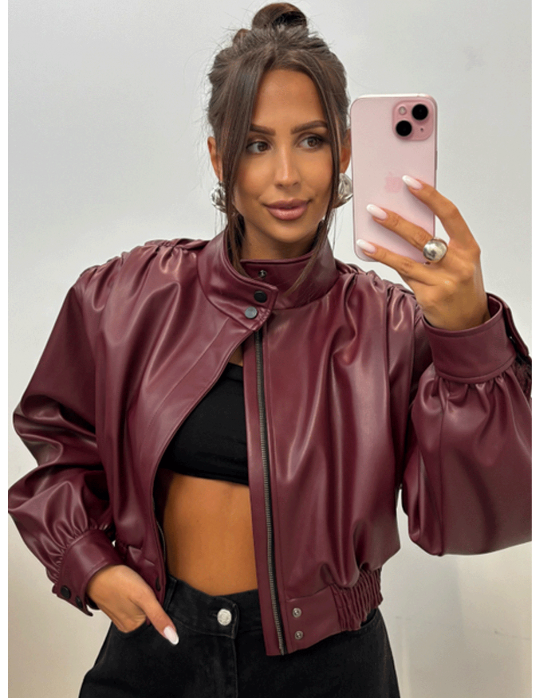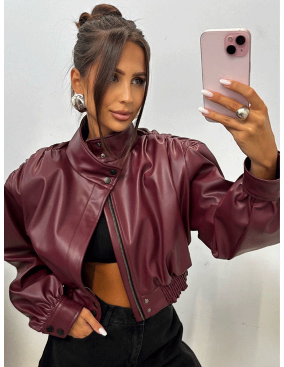 Krótka kurtka z eko-skóry LUNAS - bordowa