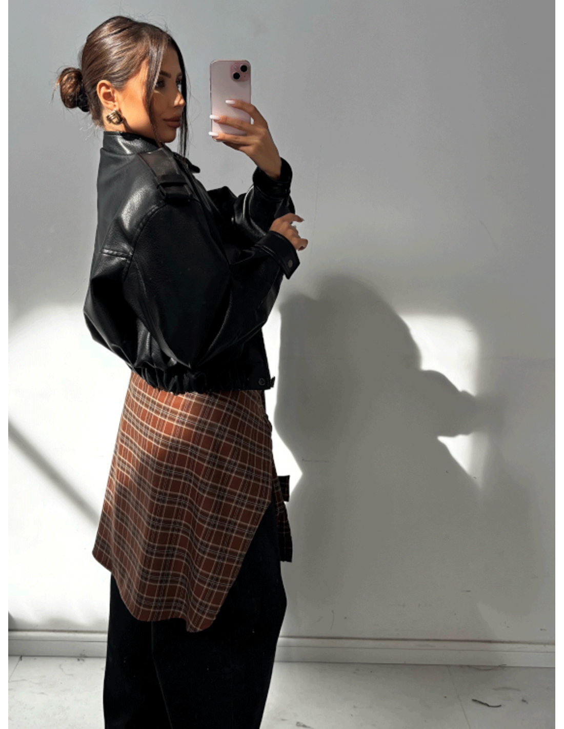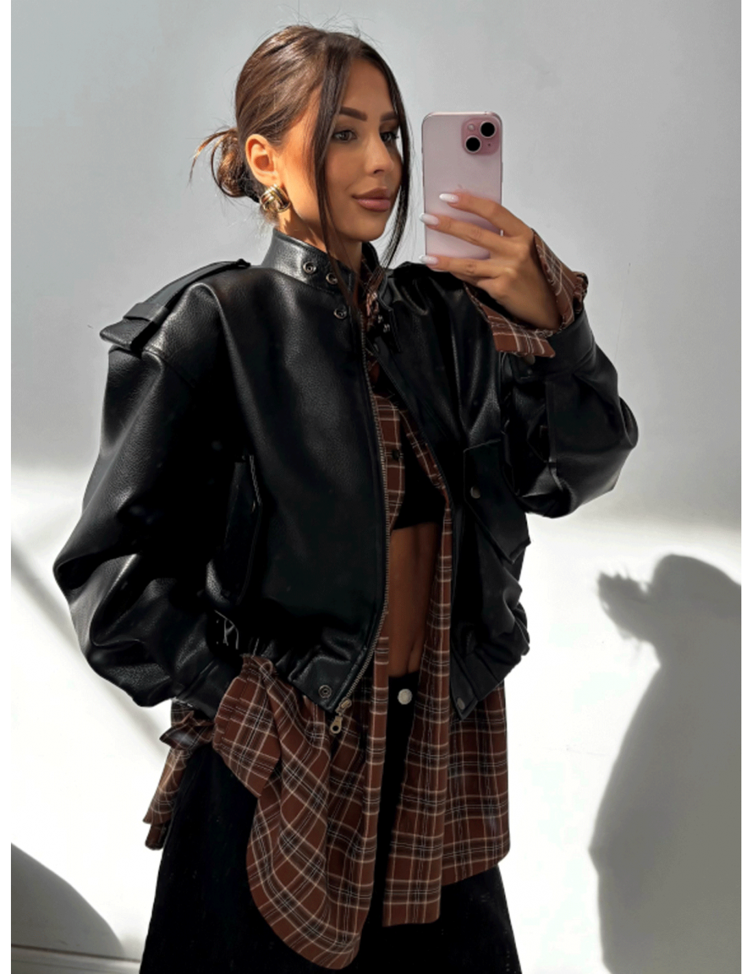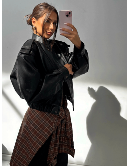 Krótka kurtka z eko-skóry z pagonami ANDRINA - czarna