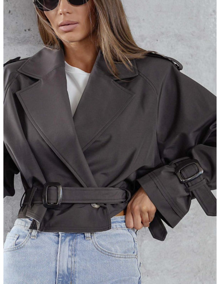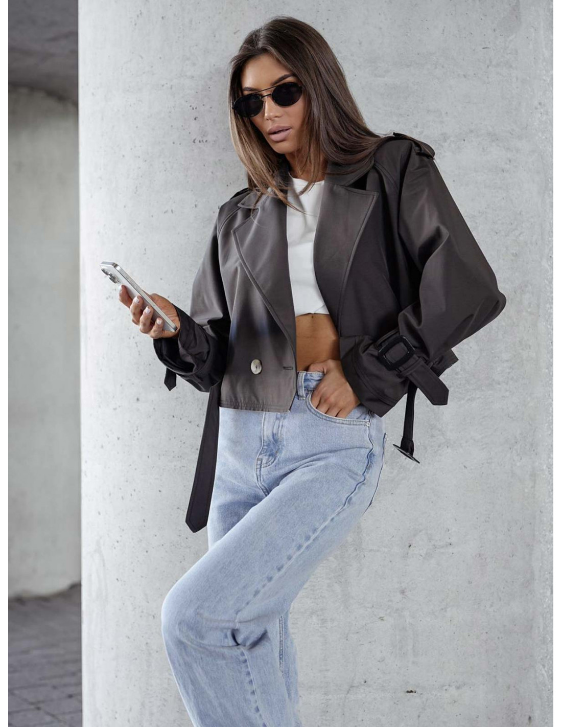 Bawełniana krótka kurtka trencz CATILIN - grafitowa