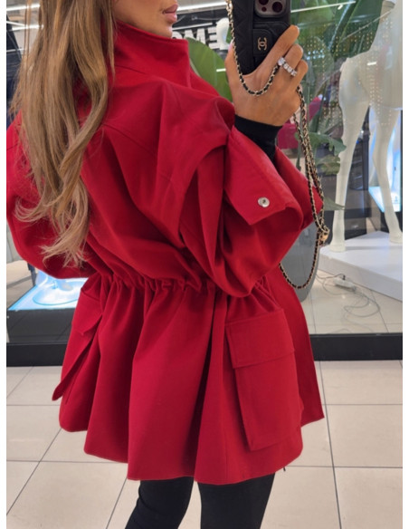 Bawełniana kurtka-kamizelka oversize 2w1 CORDA - czerwona
