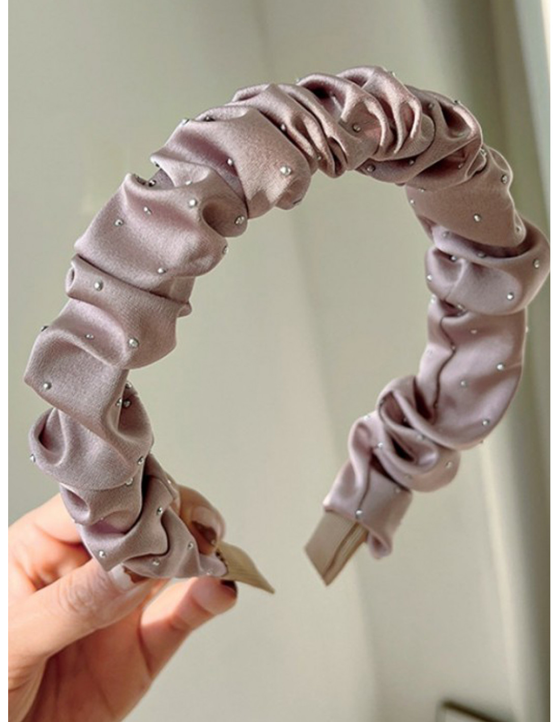 Opaska marszczona z cyrkoniami - brudny róż