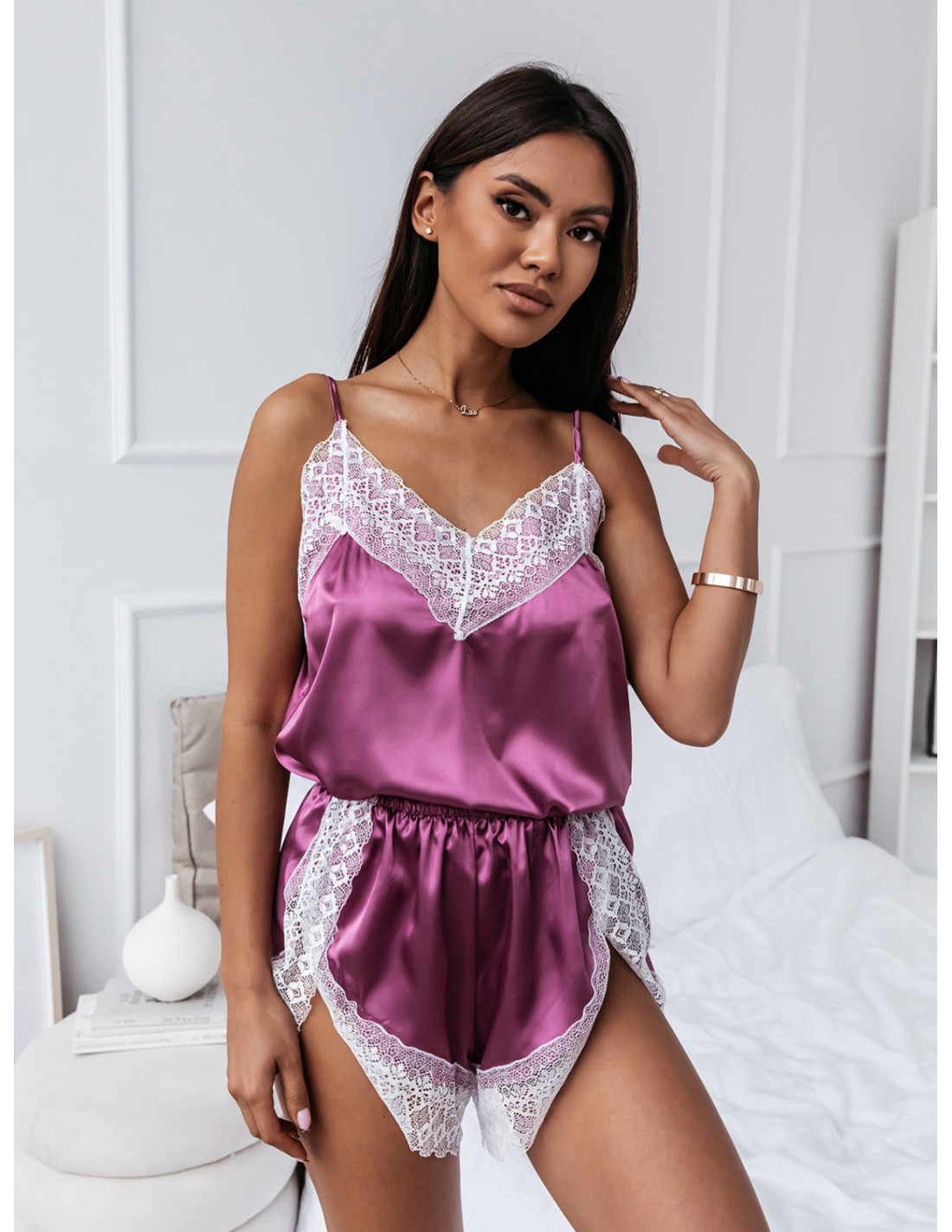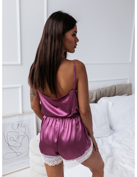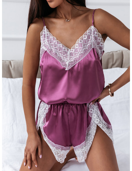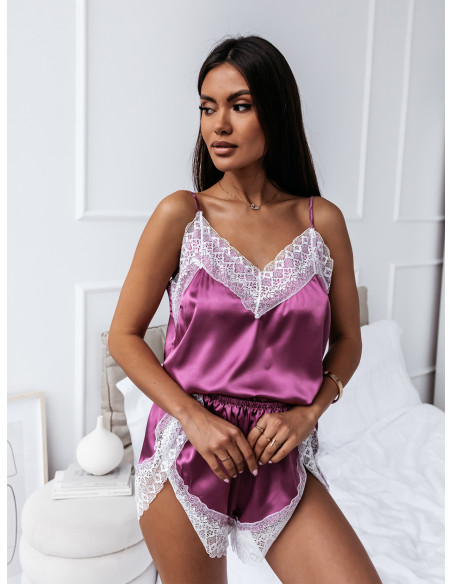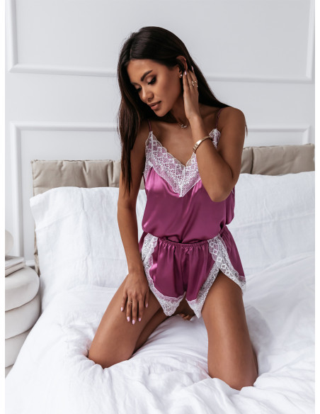 Satynowy komplet koszulka + szorty - BUENAS - fuksja