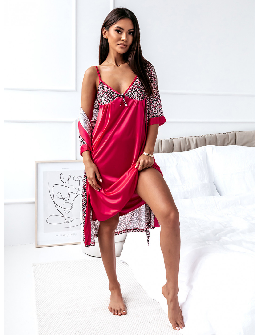 Komplet koszulka + szlafrok - JOY - fuksja
