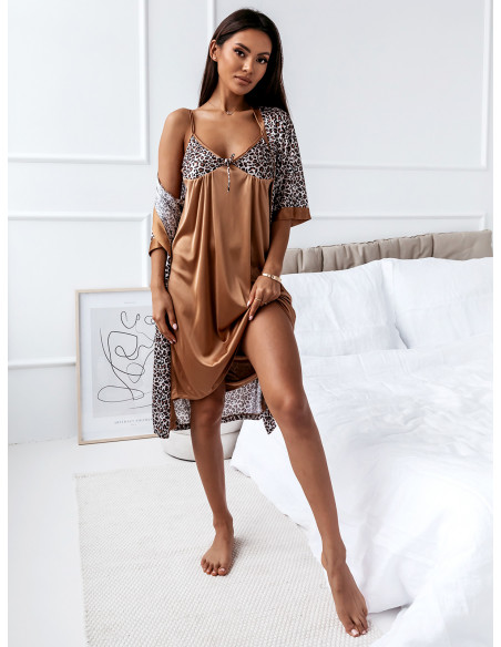 Komplet koszulka + szlafrok - JOY - beżowy