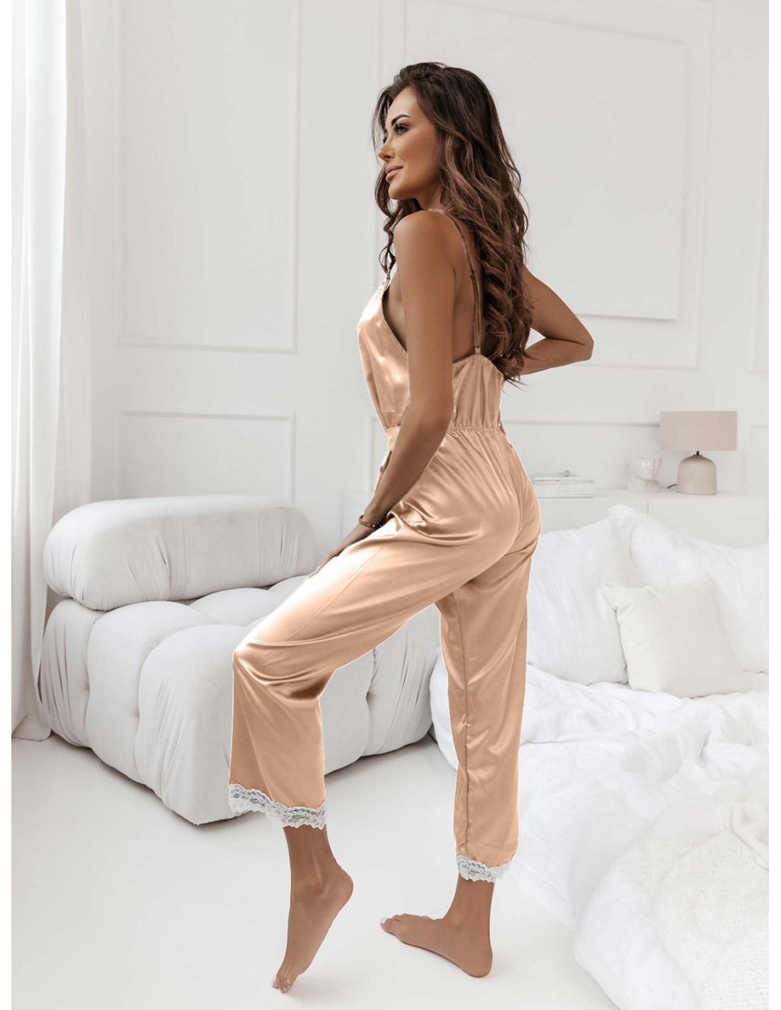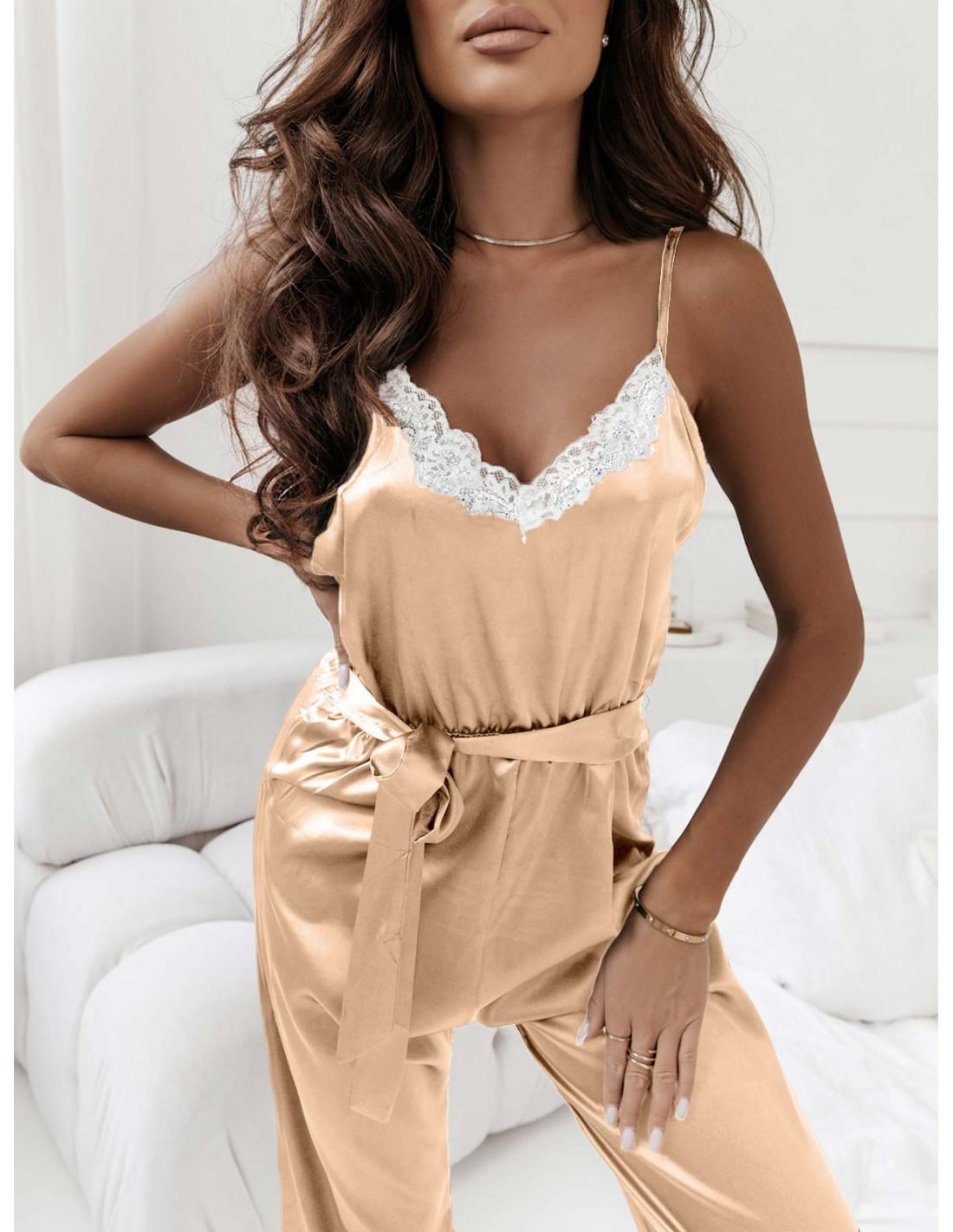 Satynowa piżama kombinezon KILIJA - beżowa