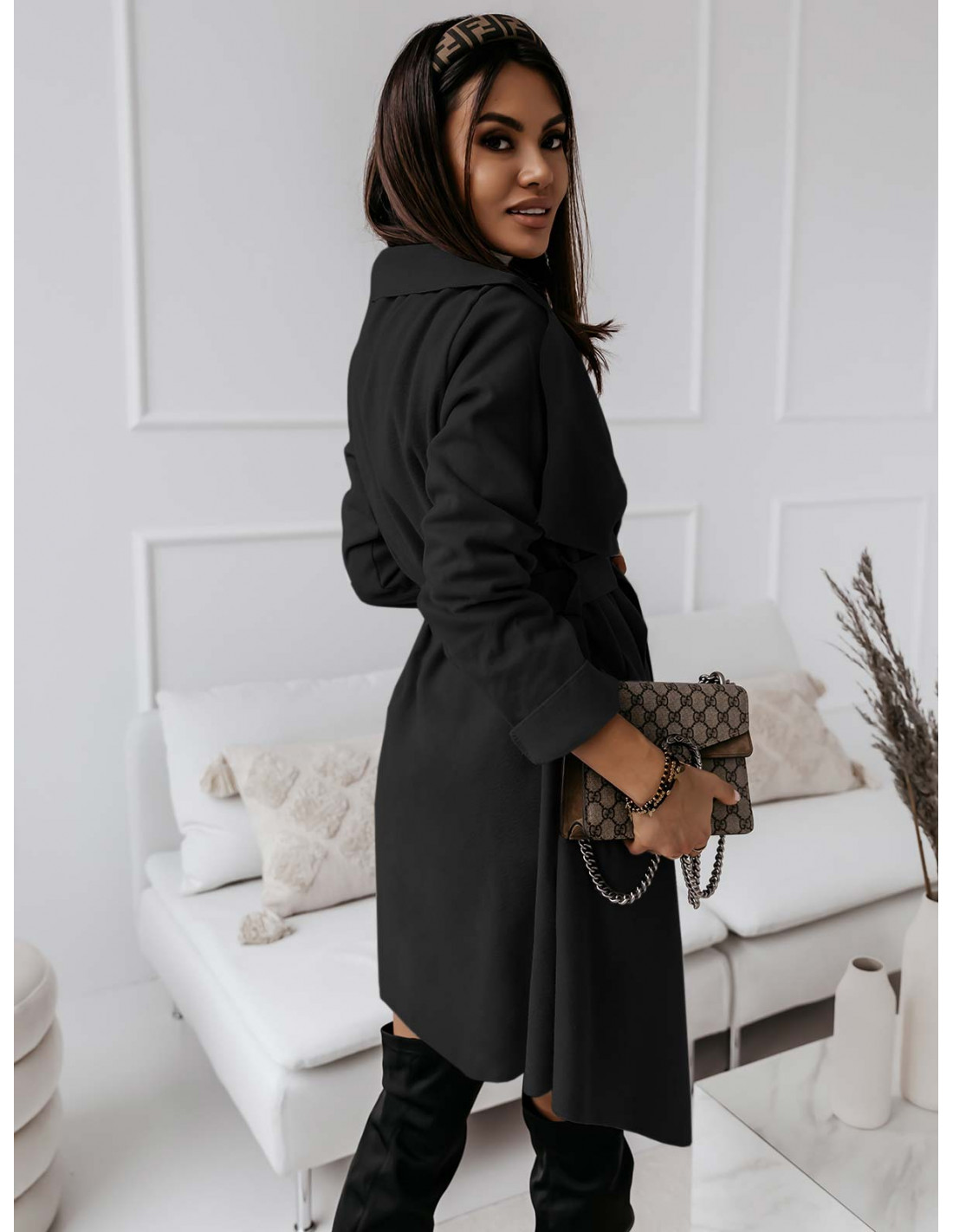 Flauszowy płaszcz CAMILLE - czarny