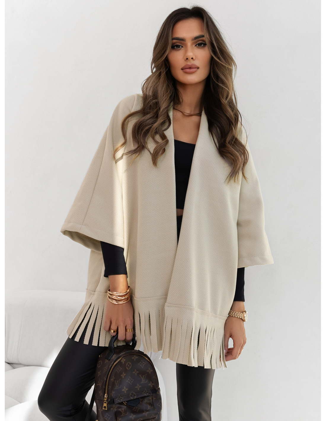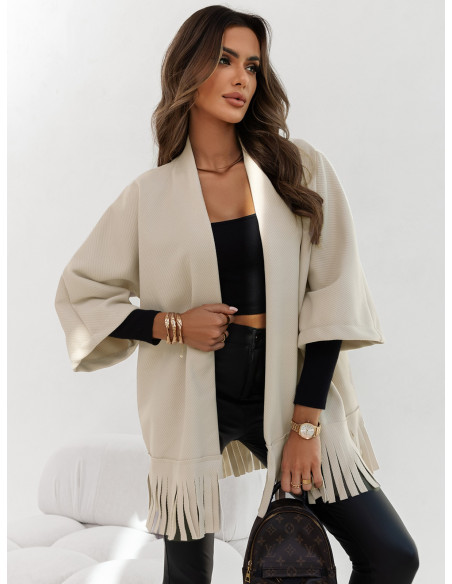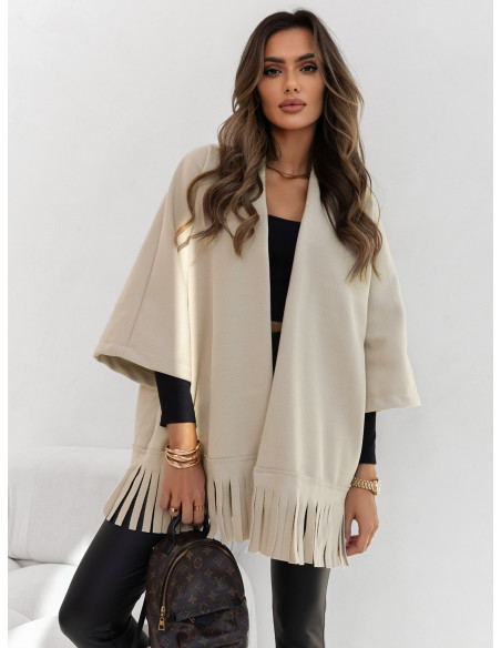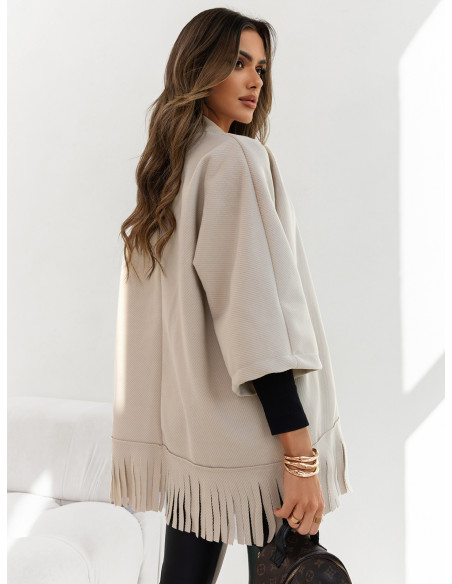 Ponczo z ozdobnymi frędzlami SAMIA - beżowy