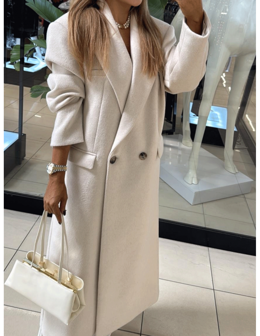 Wełniany płaszcz zapinany na guziki GALENE - jasny beż