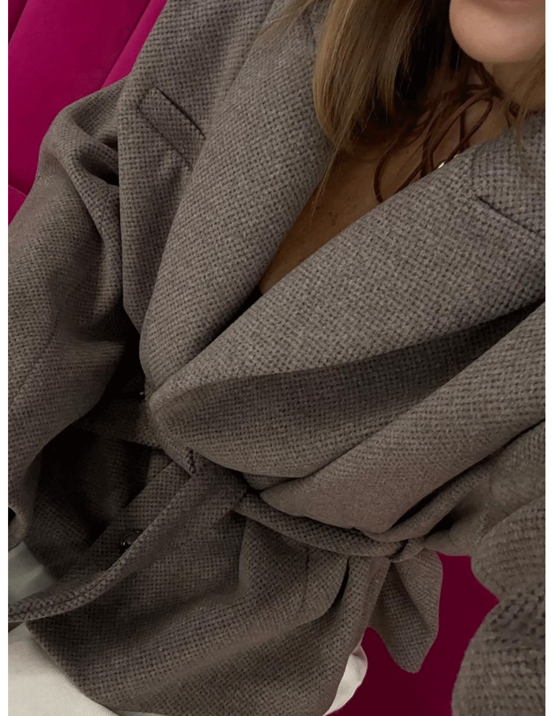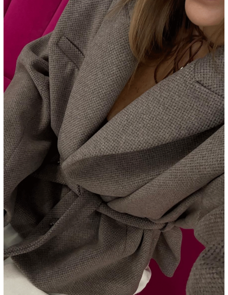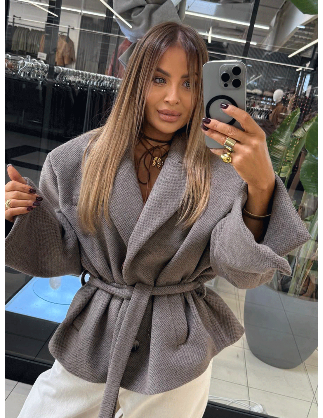 Stylowy krótki płaszcz z paskiem SHAWN - cappucino